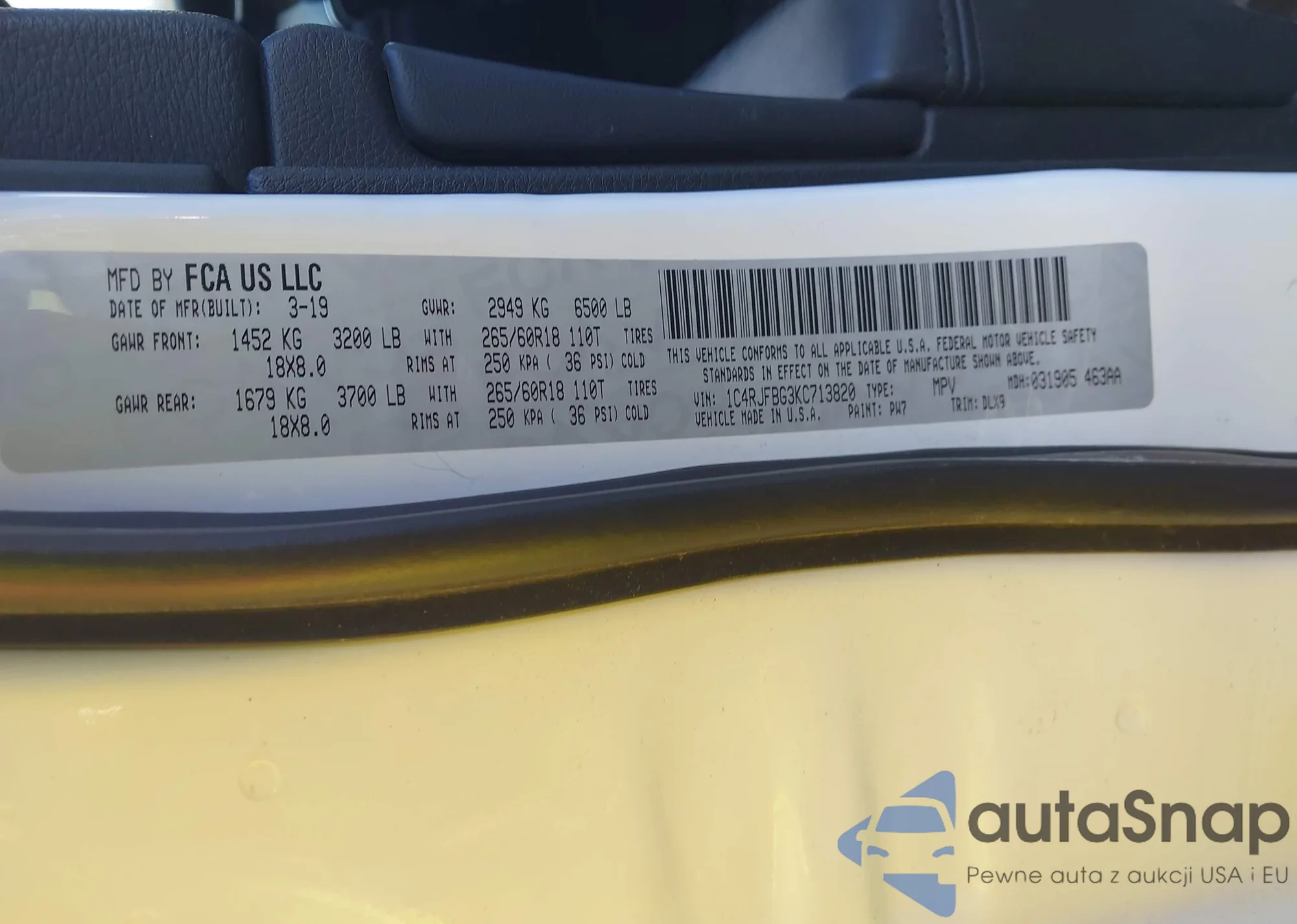 • VIN 1C4RJFBG3KC713820