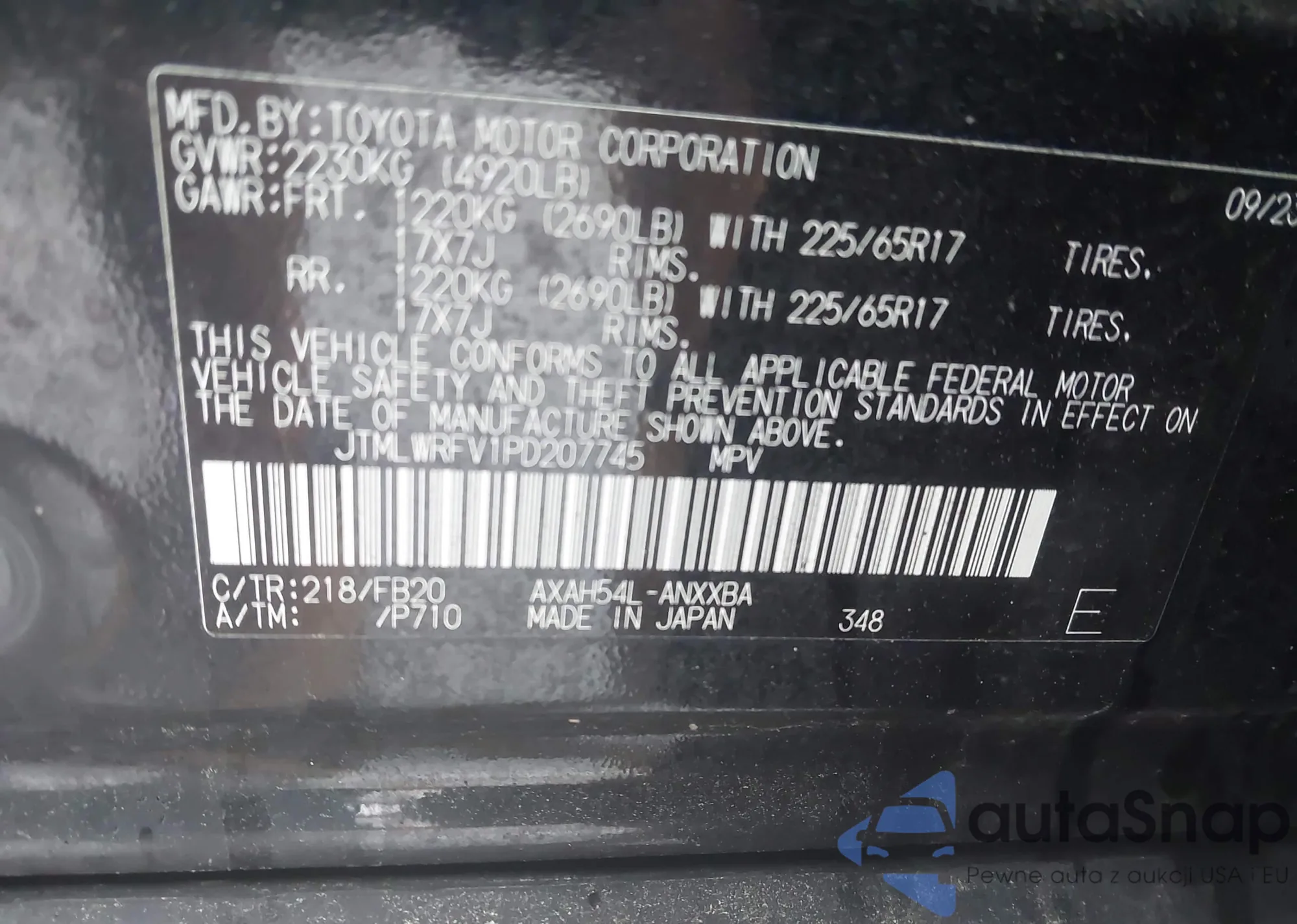 LOT: 43516431 VIN: JTMBF4DV2AD027375