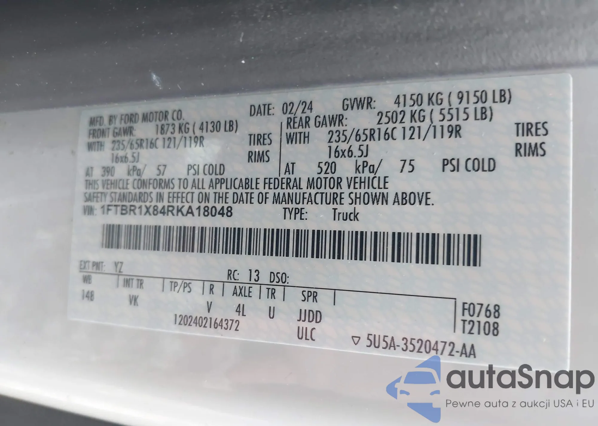 • VIN 1FTBR1X84RKA18048