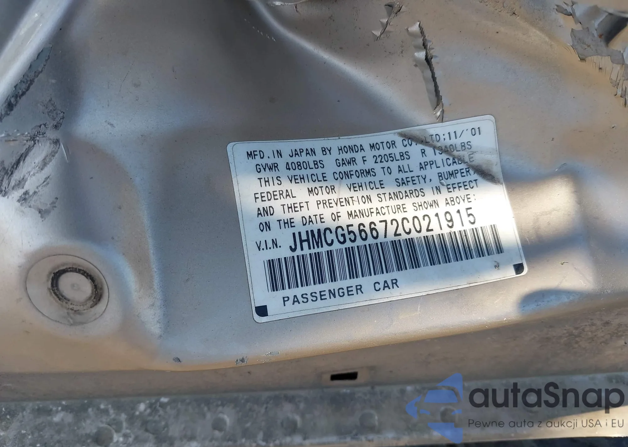 LOT: 42715197 VIN: JHMCG56672C021915