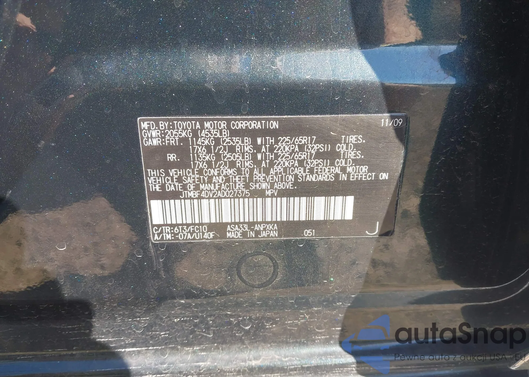 • VIN JTMBF4DV2AD027375