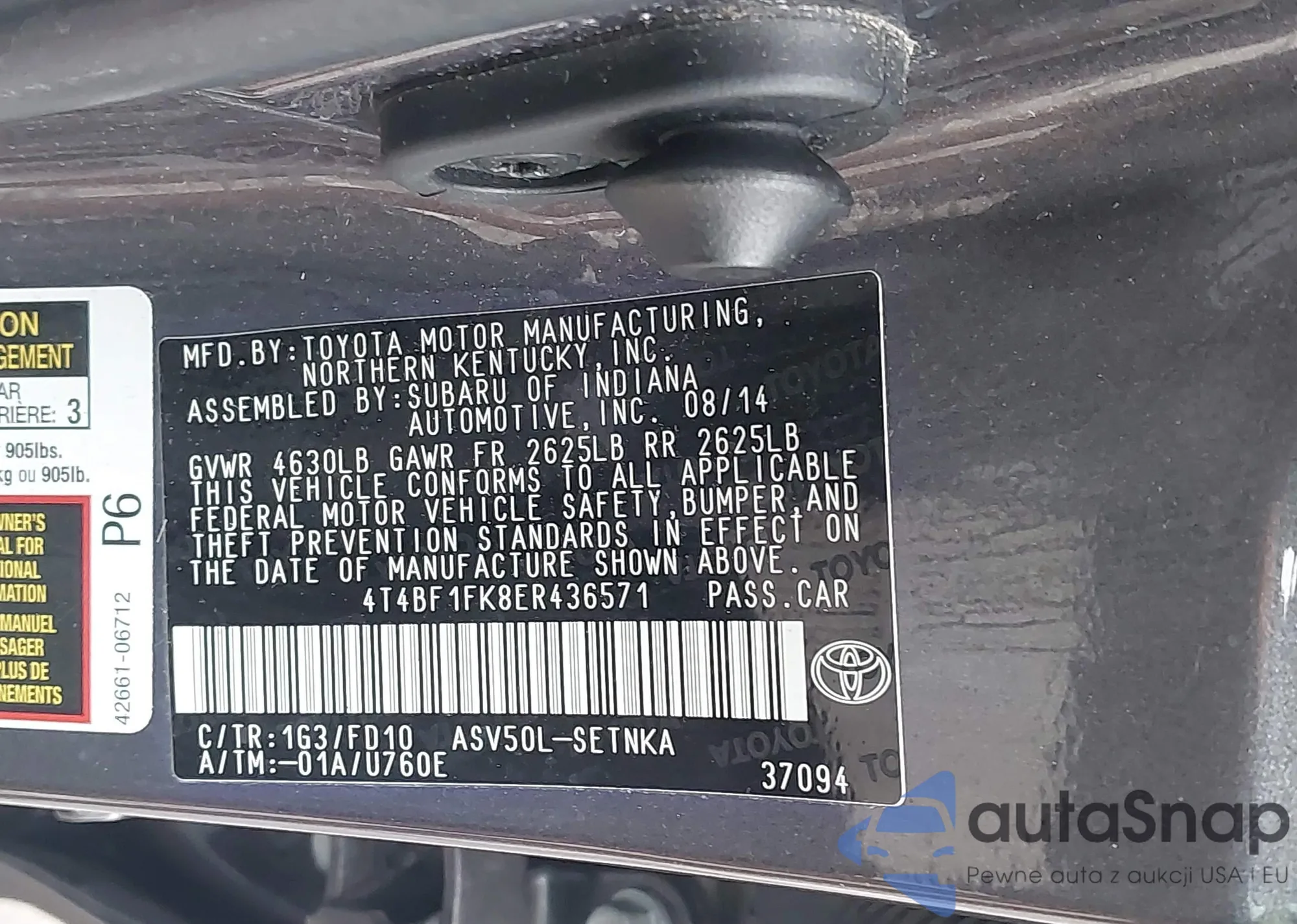 • VIN 4T4BF1FK8ER436571