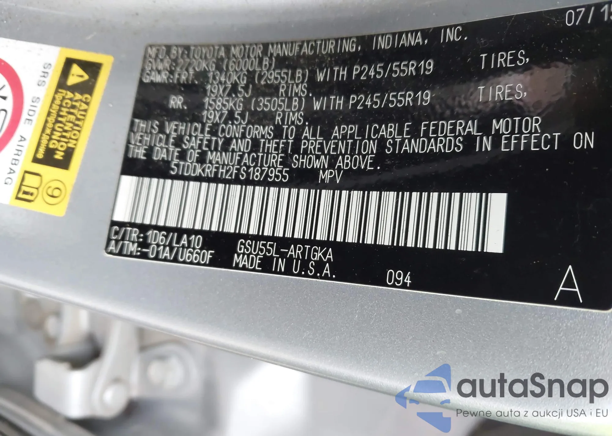 • VIN 5TDDKRFH2FS187955