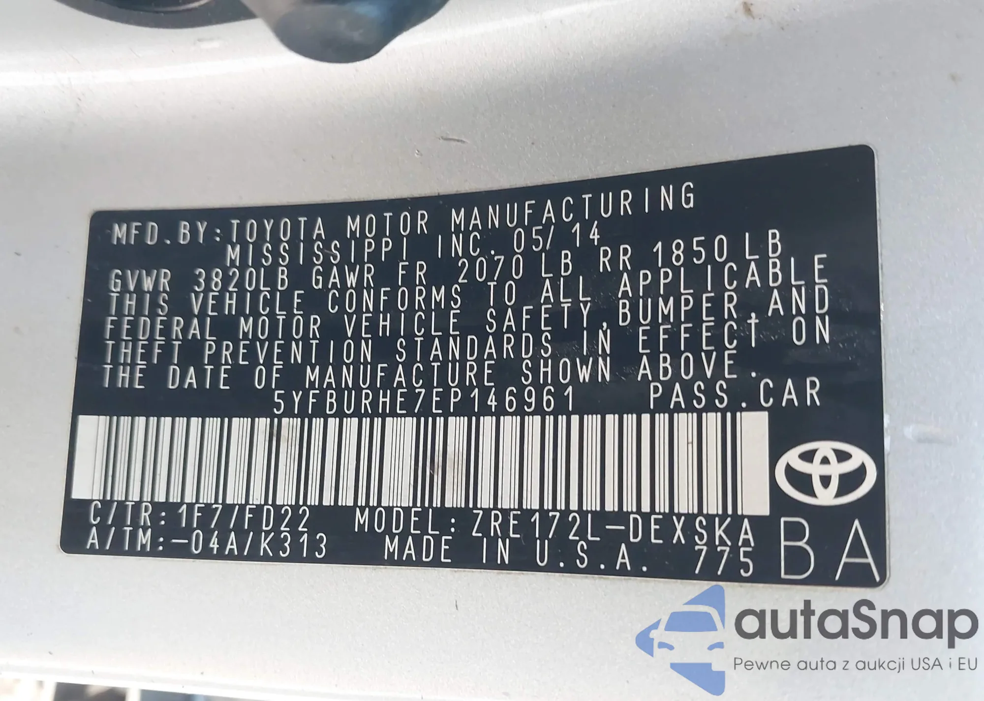 • VIN 5YFBURHE7EP146961