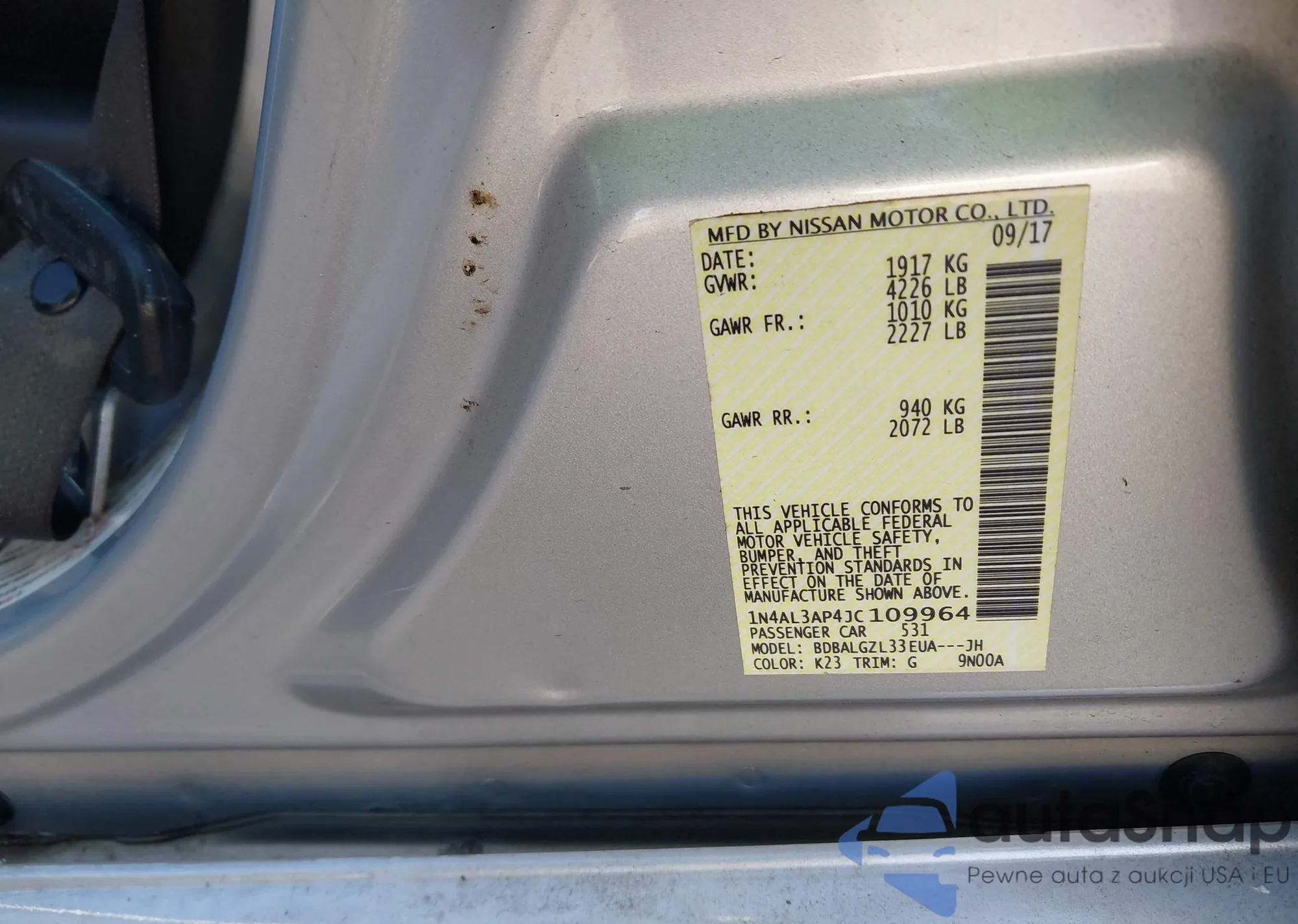 LOT: 43337663 VIN: 1N4AL3AP4JC109964