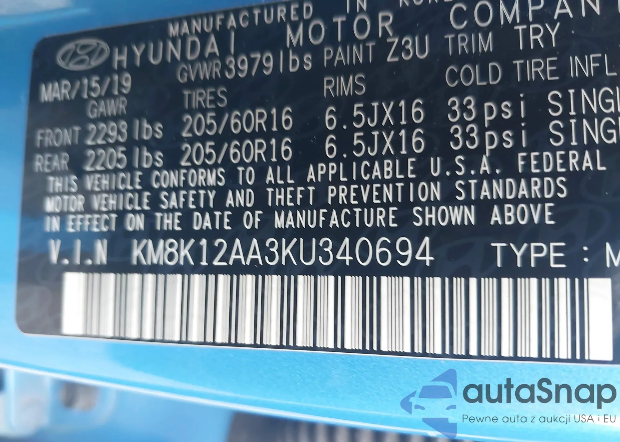 • VIN KM8K12AA3KU340694