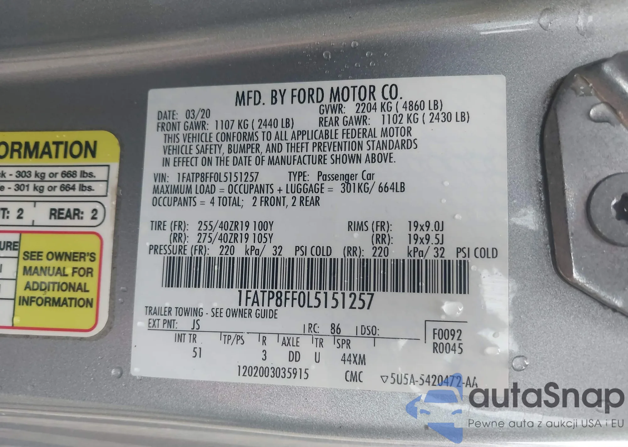 LOT: 39958490 VIN: 3FADP4BJ2FM199414