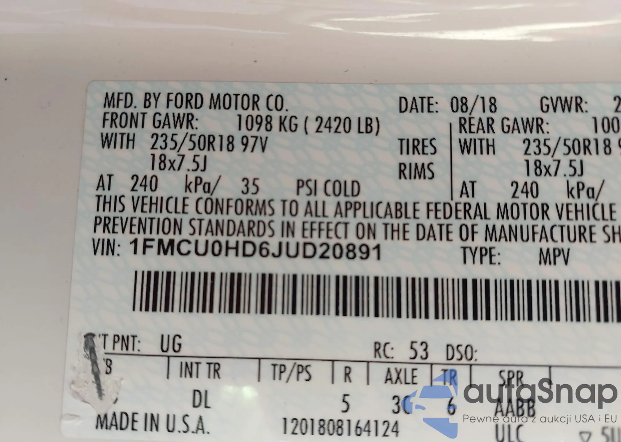 • VIN 1FMCU0HD6JUD20891