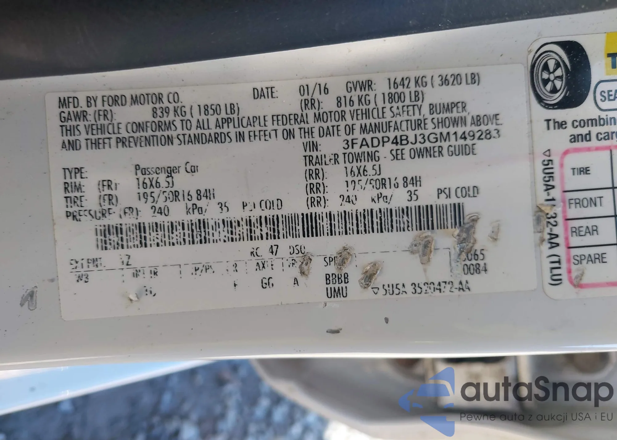 LOT: 43719092 VIN: 3FA6P0K96GR113646