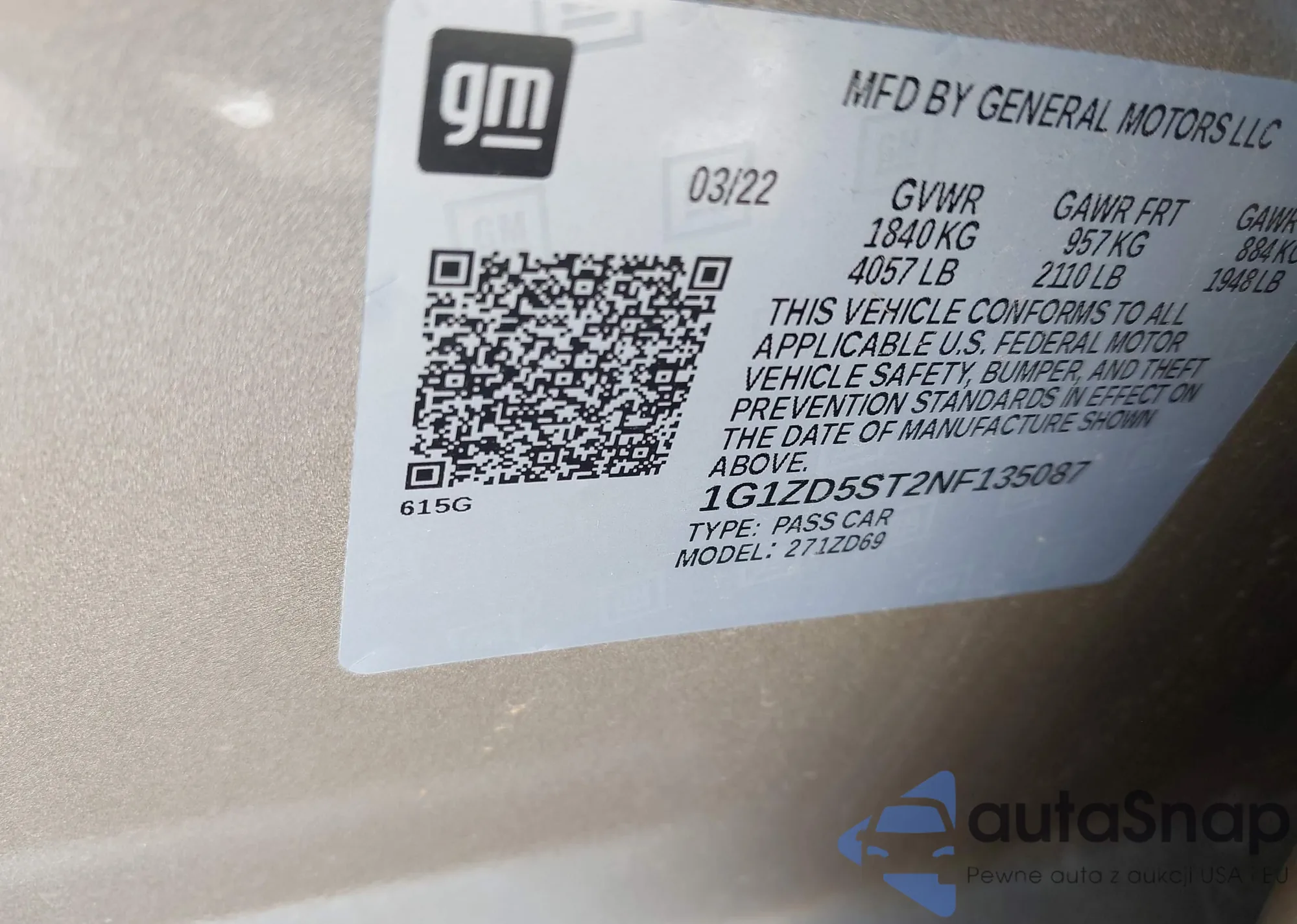 • VIN 1G1ZD5ST2NF135087