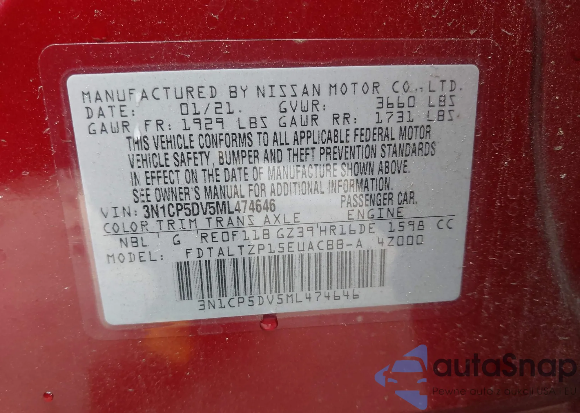 LOT: 43410397 VIN: JN8AT2MT5GW017531