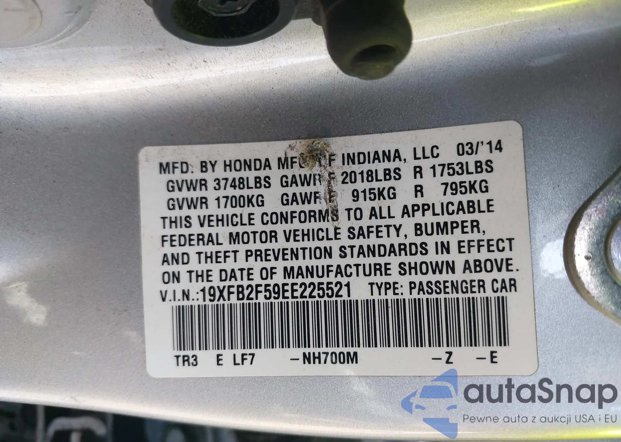 LOT: 43208838 VIN: 19XFB2F59EE225521