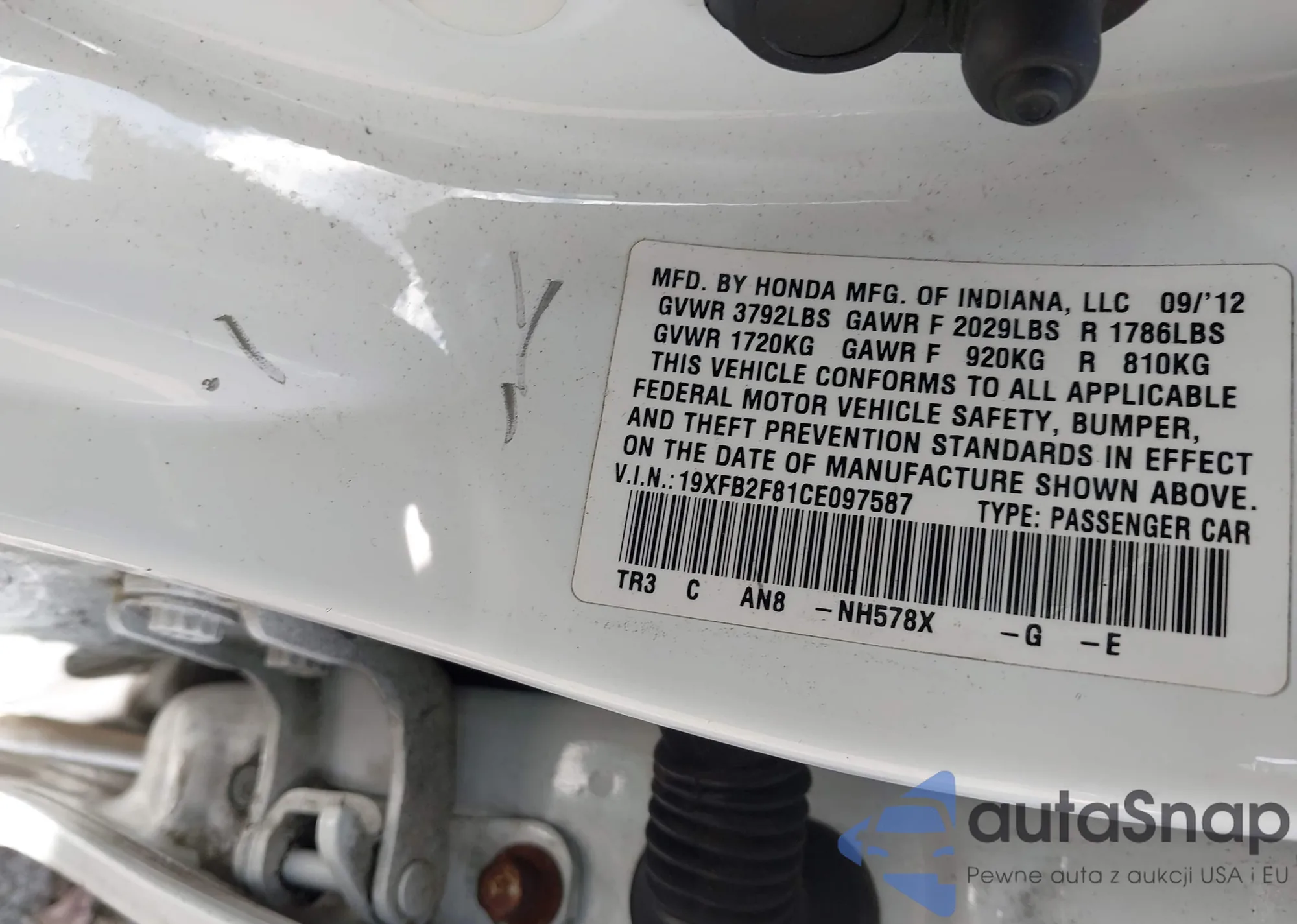 LOT: 43238837 VIN: 19XFB2F81CE097587
