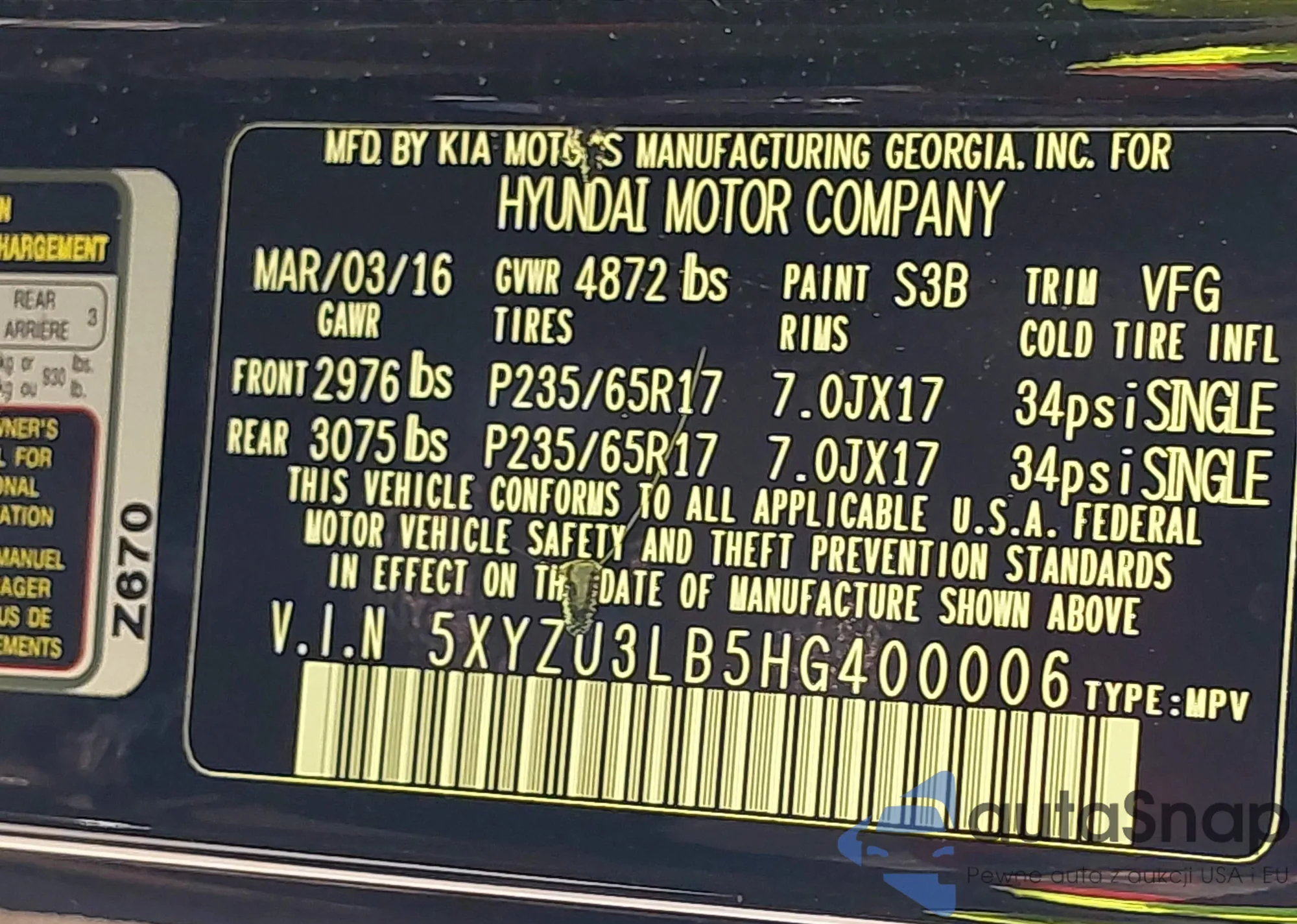 LOT: 43358227 VIN: KM8SRDHF7FU093708