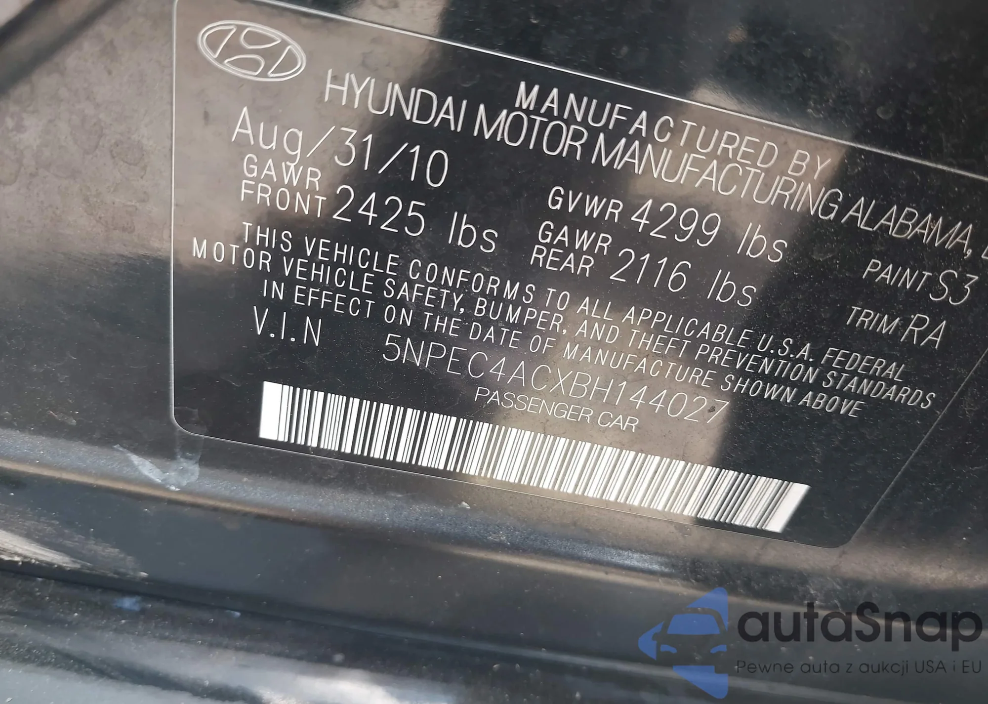 • VIN 5NPDH4AE2DH270755