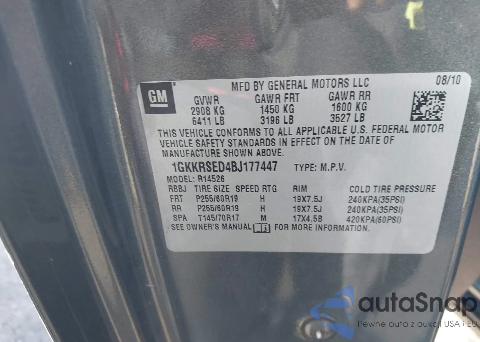 • VIN 1GKKVRKD4DJ198875