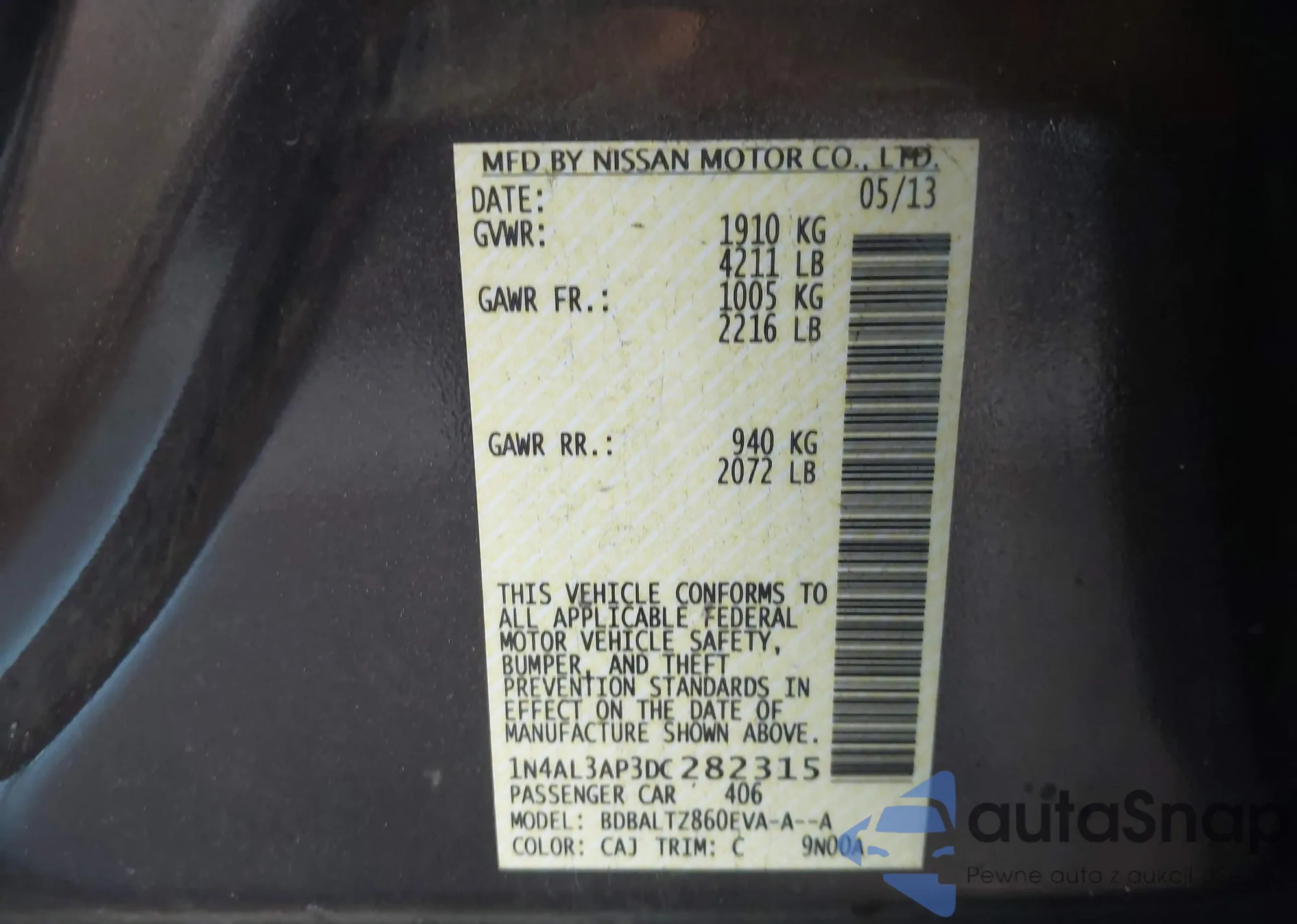 • VIN 1N4AL3AP3DC282315