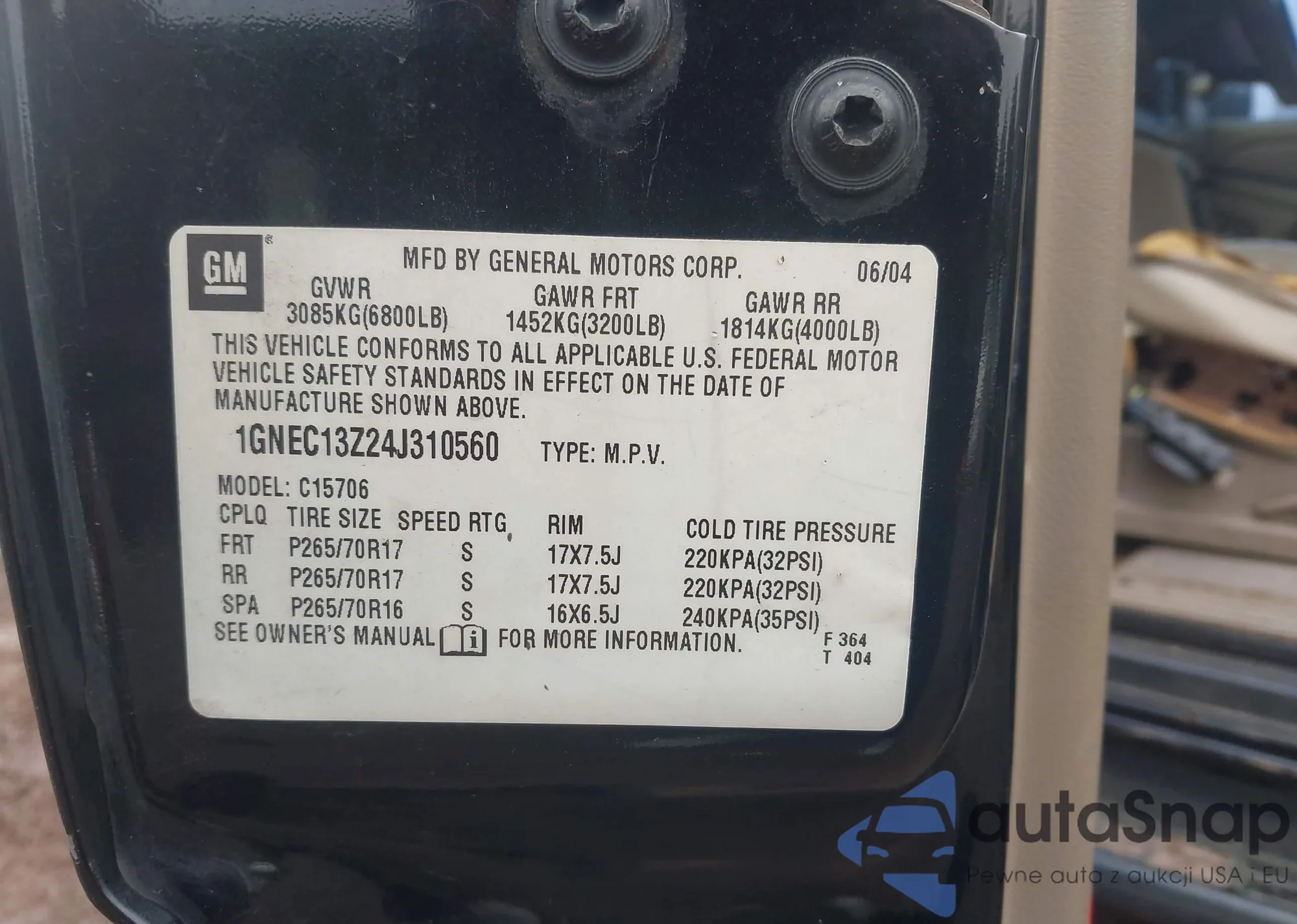 • VIN 1GNEC13Z24J310560
