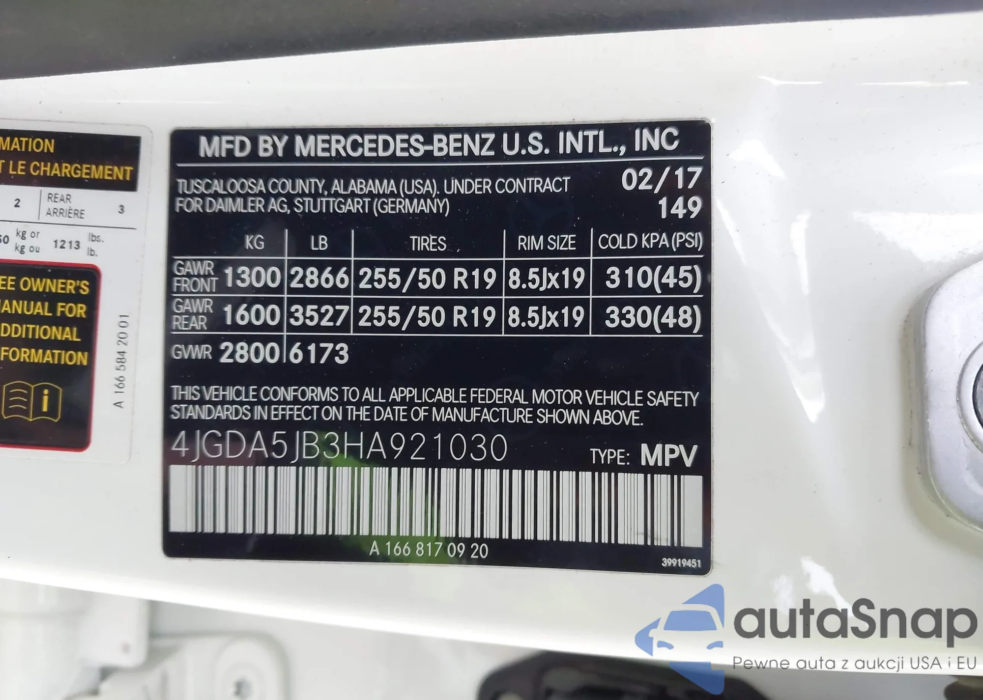 • VIN 4JGDA5JB3HA921030