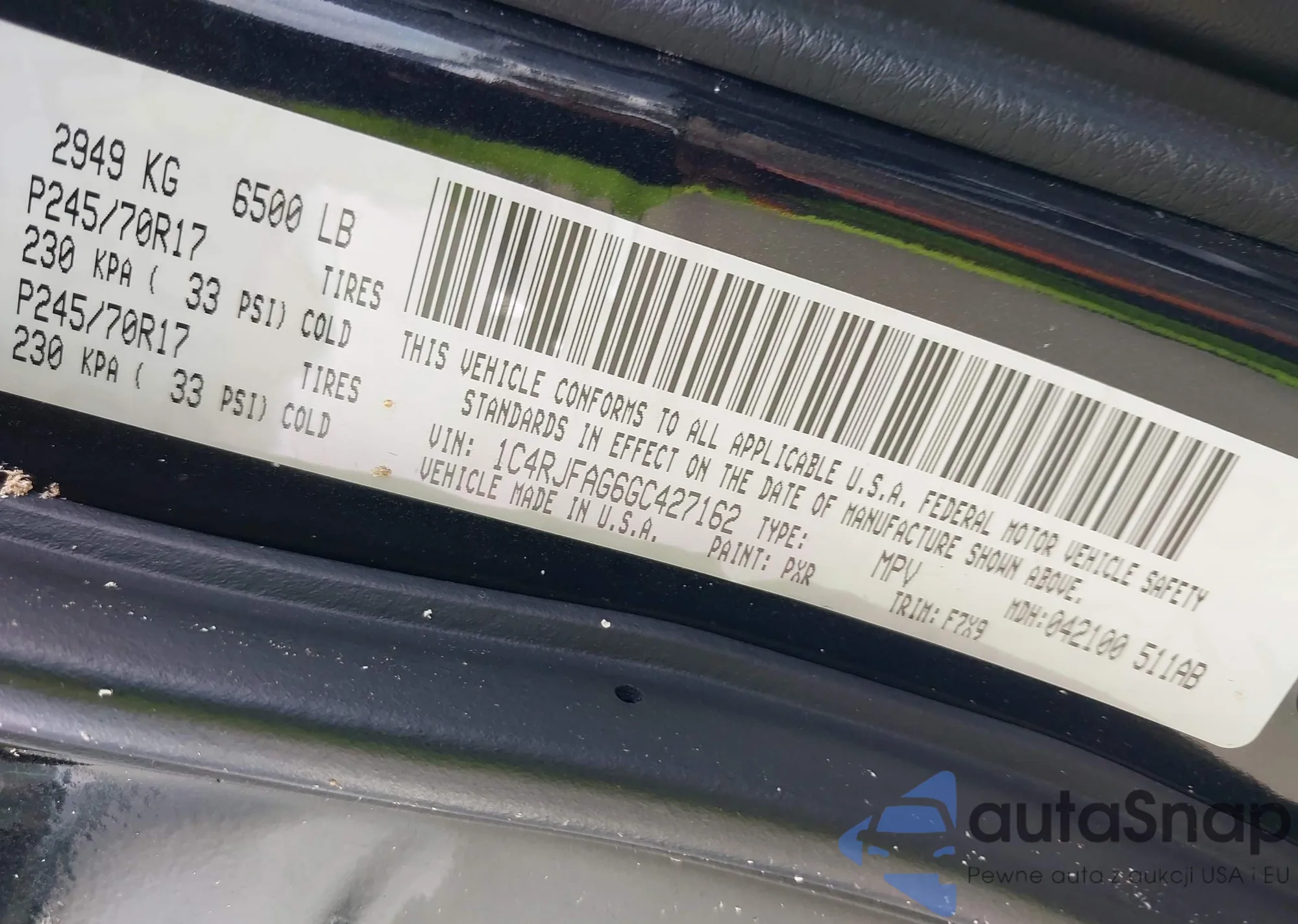 • VIN 1C4RJFAG6GC427162