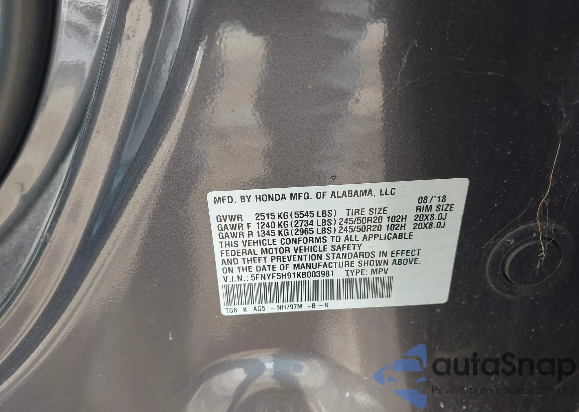 • VIN 2HGFC1E52KH704065