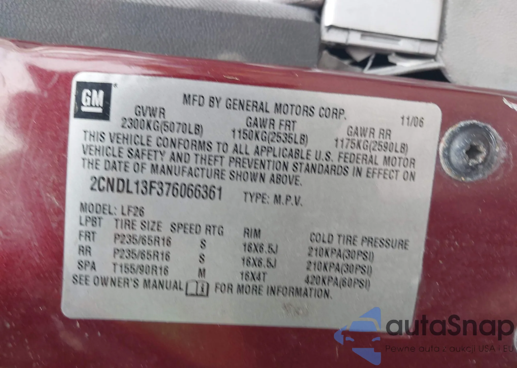 • VIN 2CNDL13F376066361