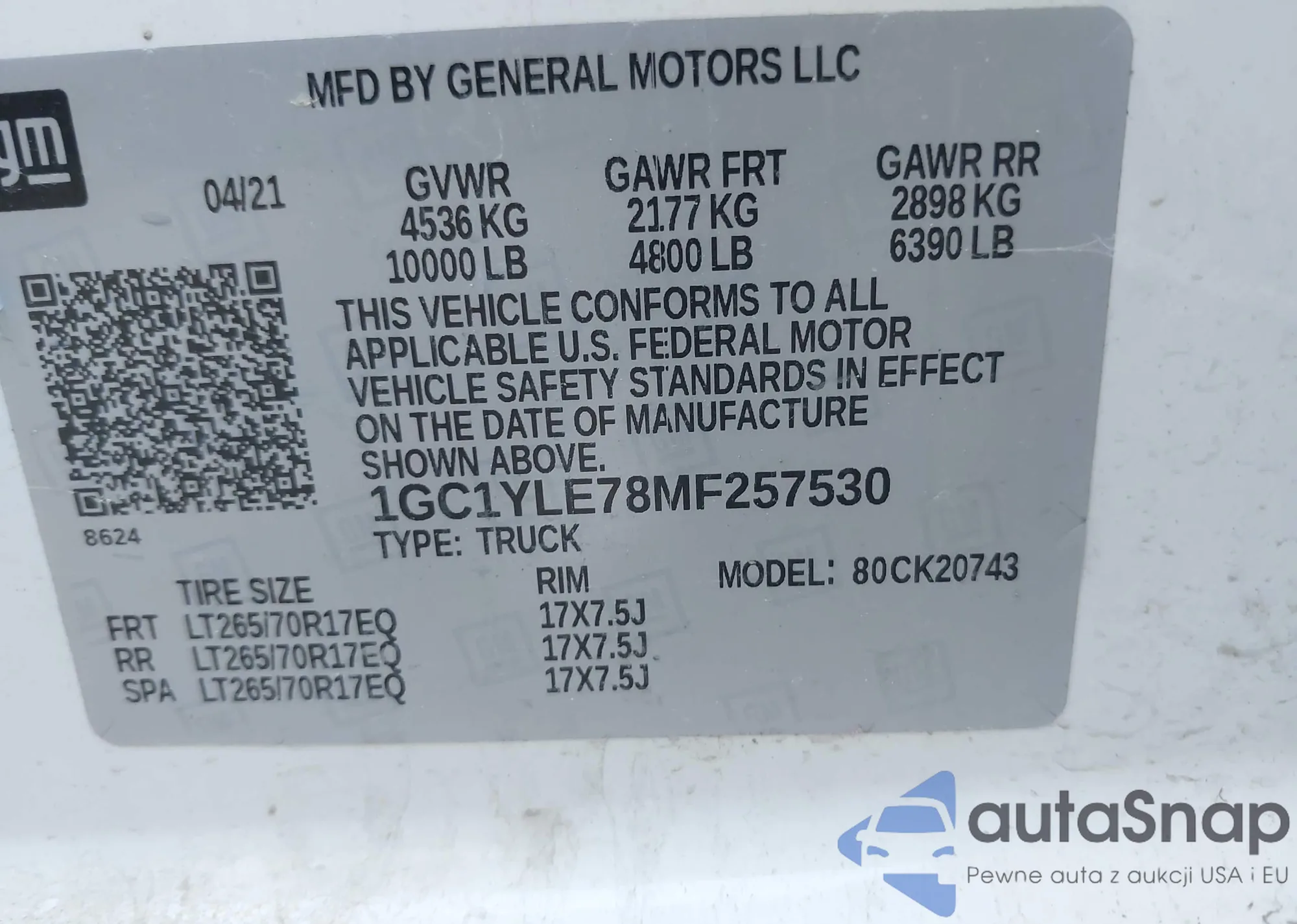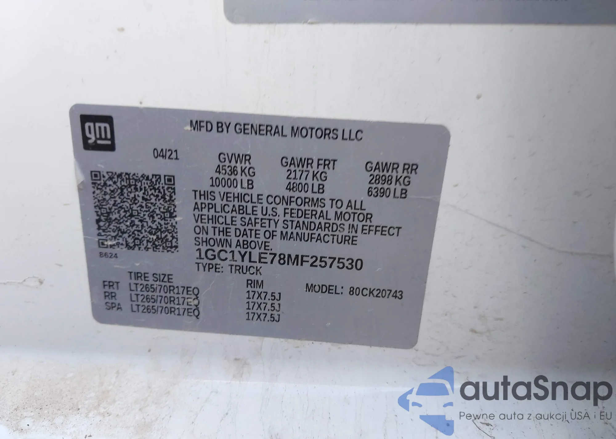 LOT: 43252192 VIN: 1GC1YLE78MF257530