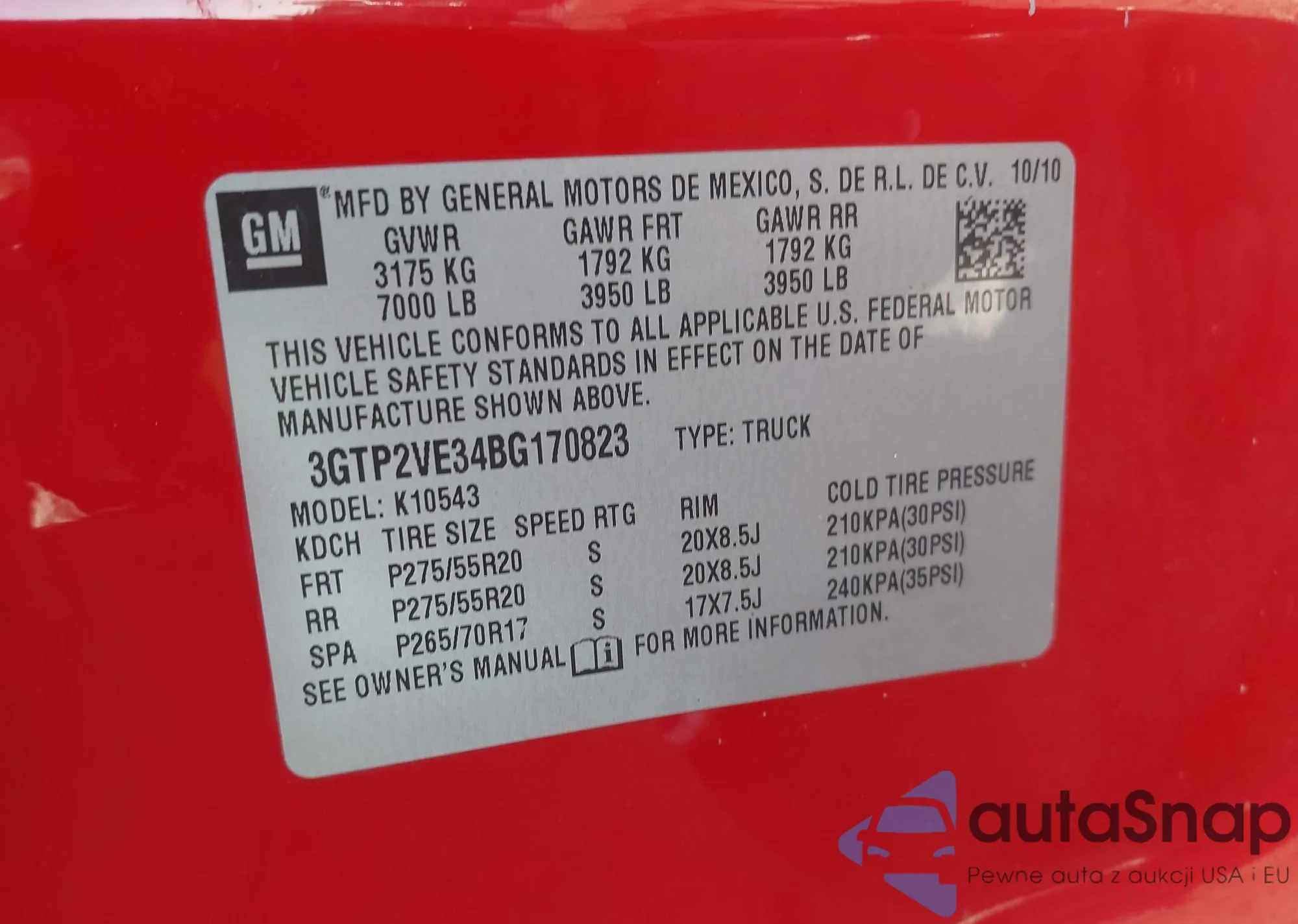 • VIN 3GTP2VE34BG170823