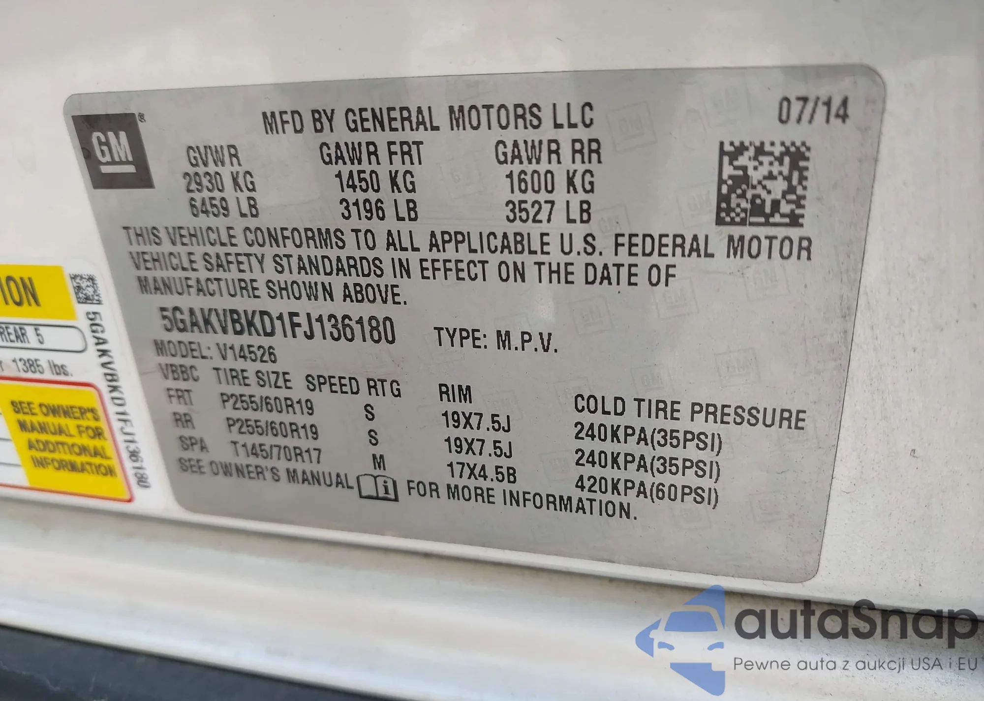 LOT: 42903383 VIN: 5GAKVBKD1FJ136180