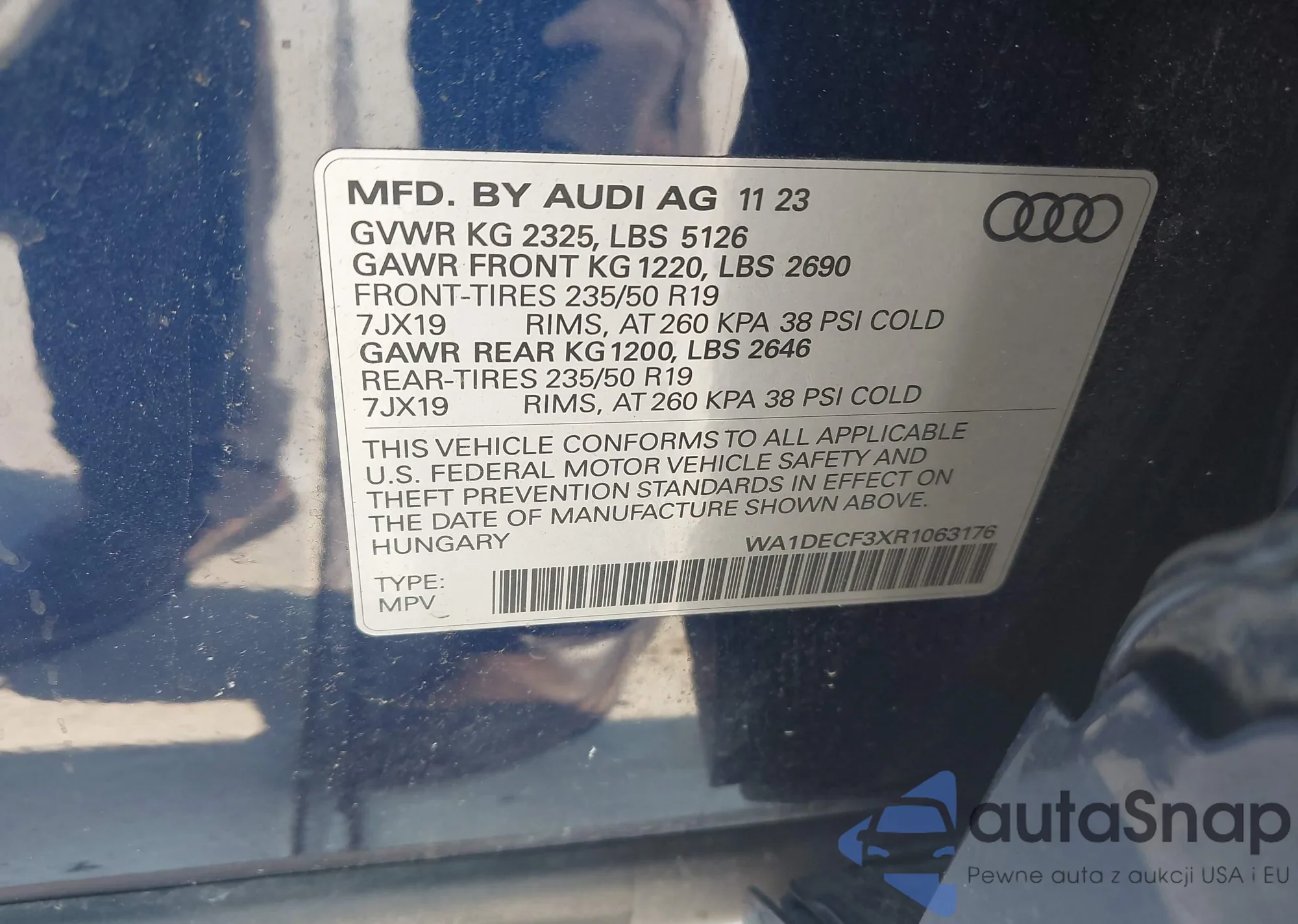 LOT: 42916176 VIN: WA1DECF3XR1063176