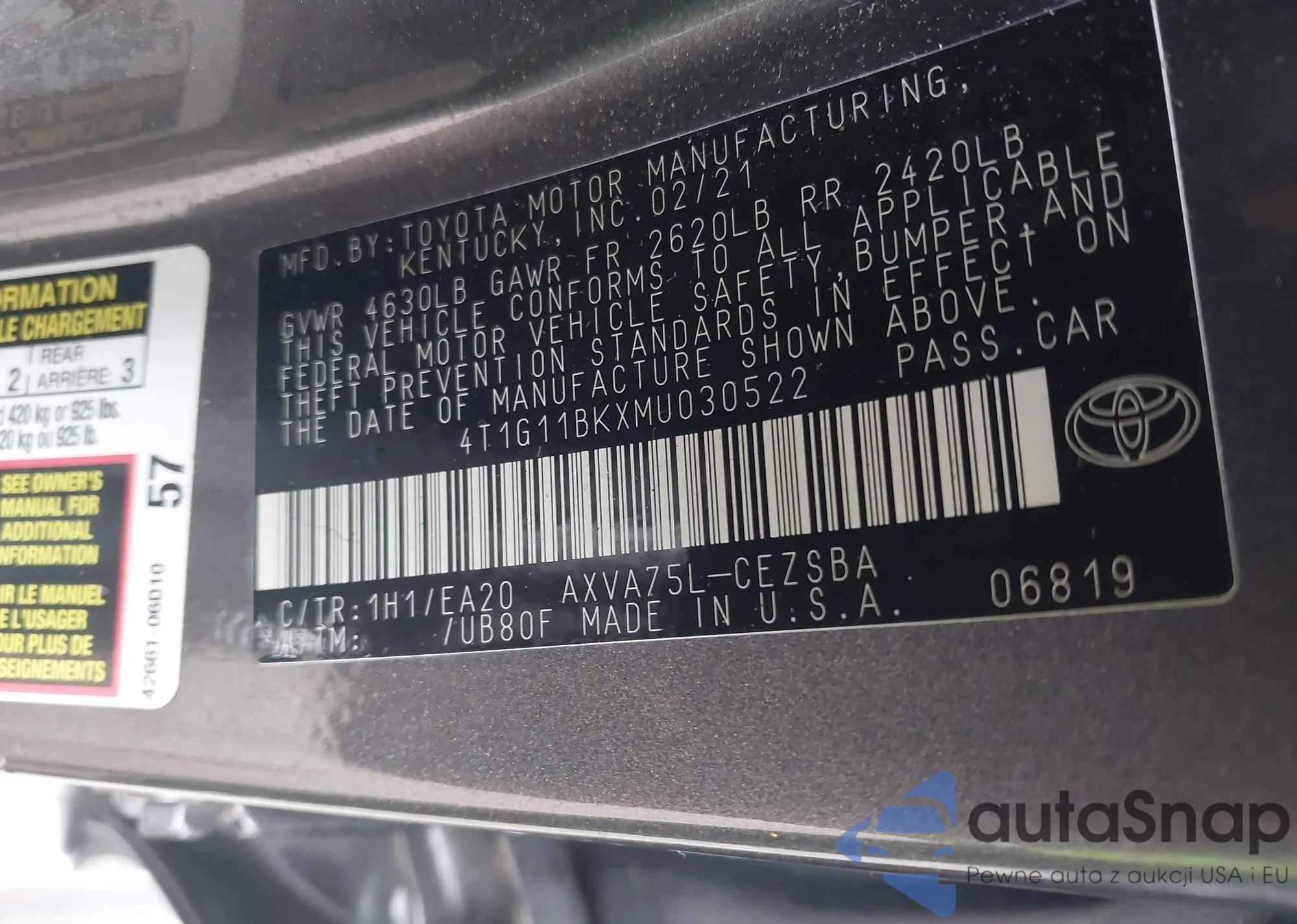 LOT: 43053340 VIN: 4T1G11BKXMU030522