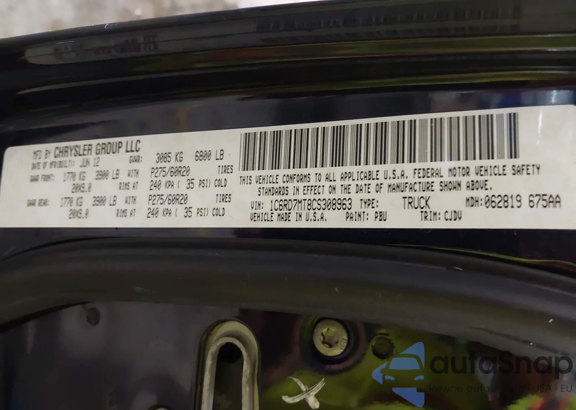 • VIN 1C6RD7MT8CS308963