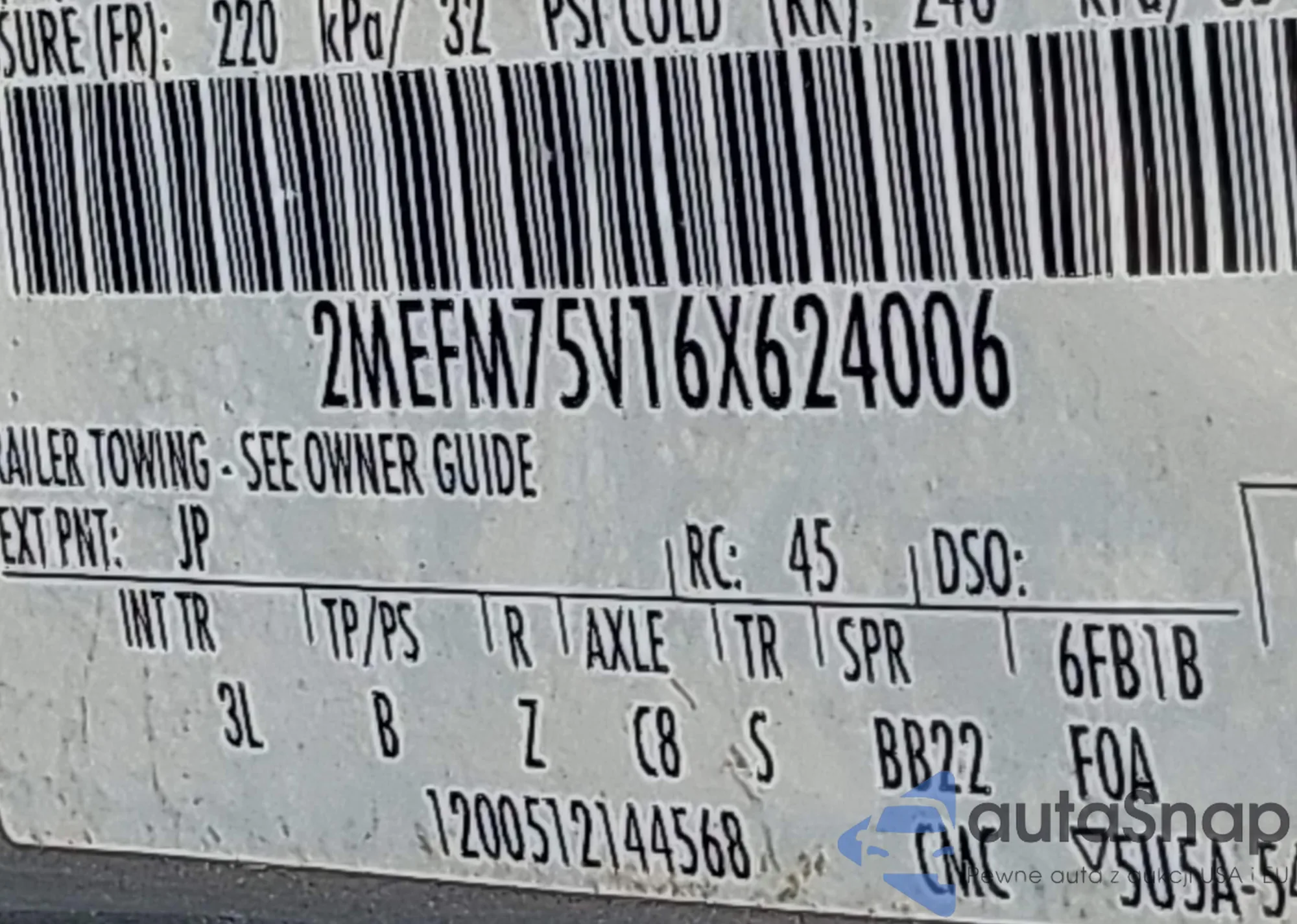LOT: 43507414 VIN: 4T1BK36B56U071866