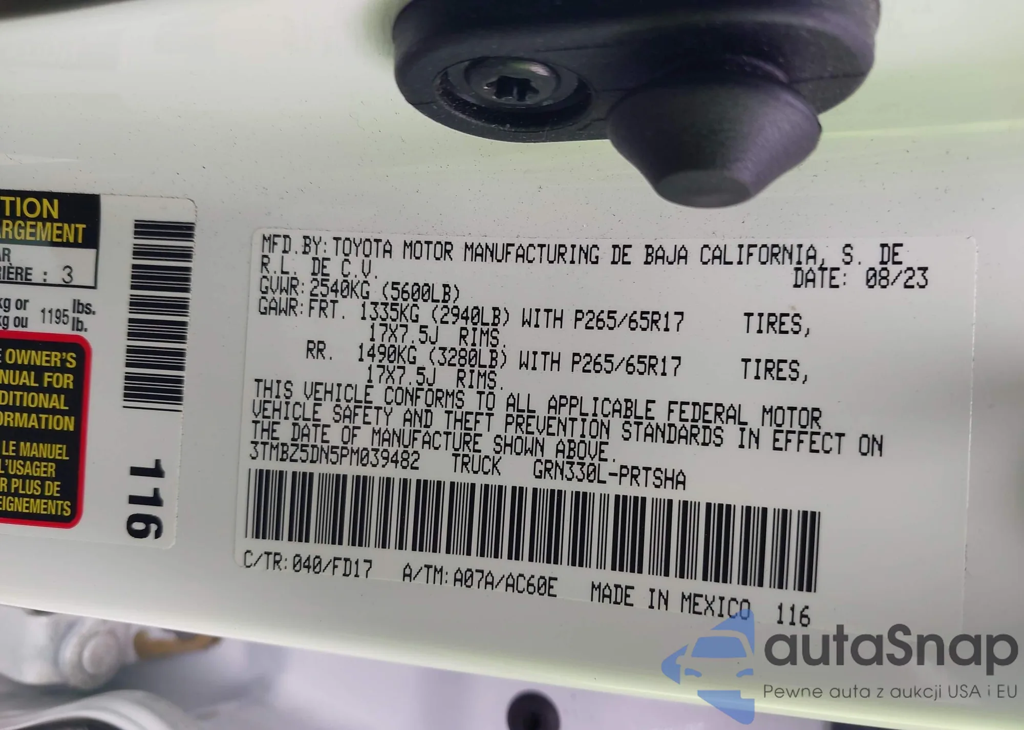 LOT: 43328656 VIN: 3TMBZ5DN5PM039482