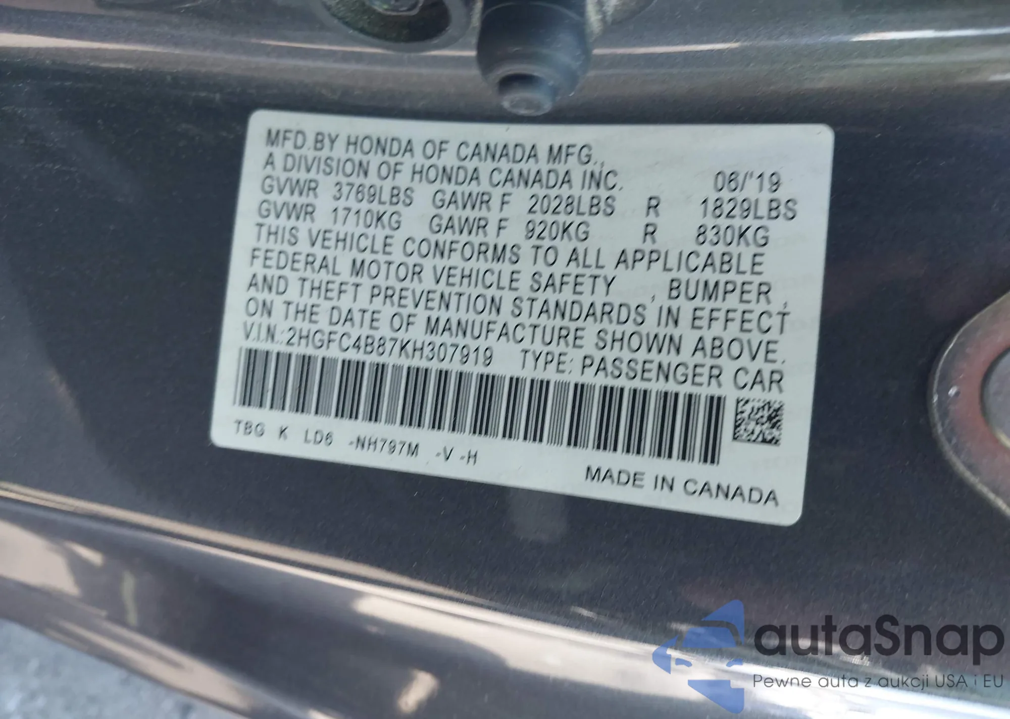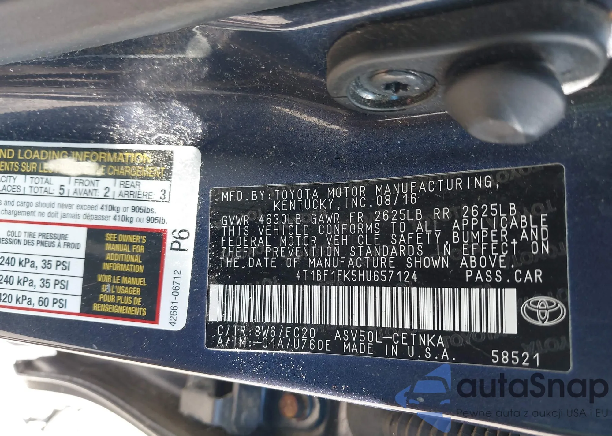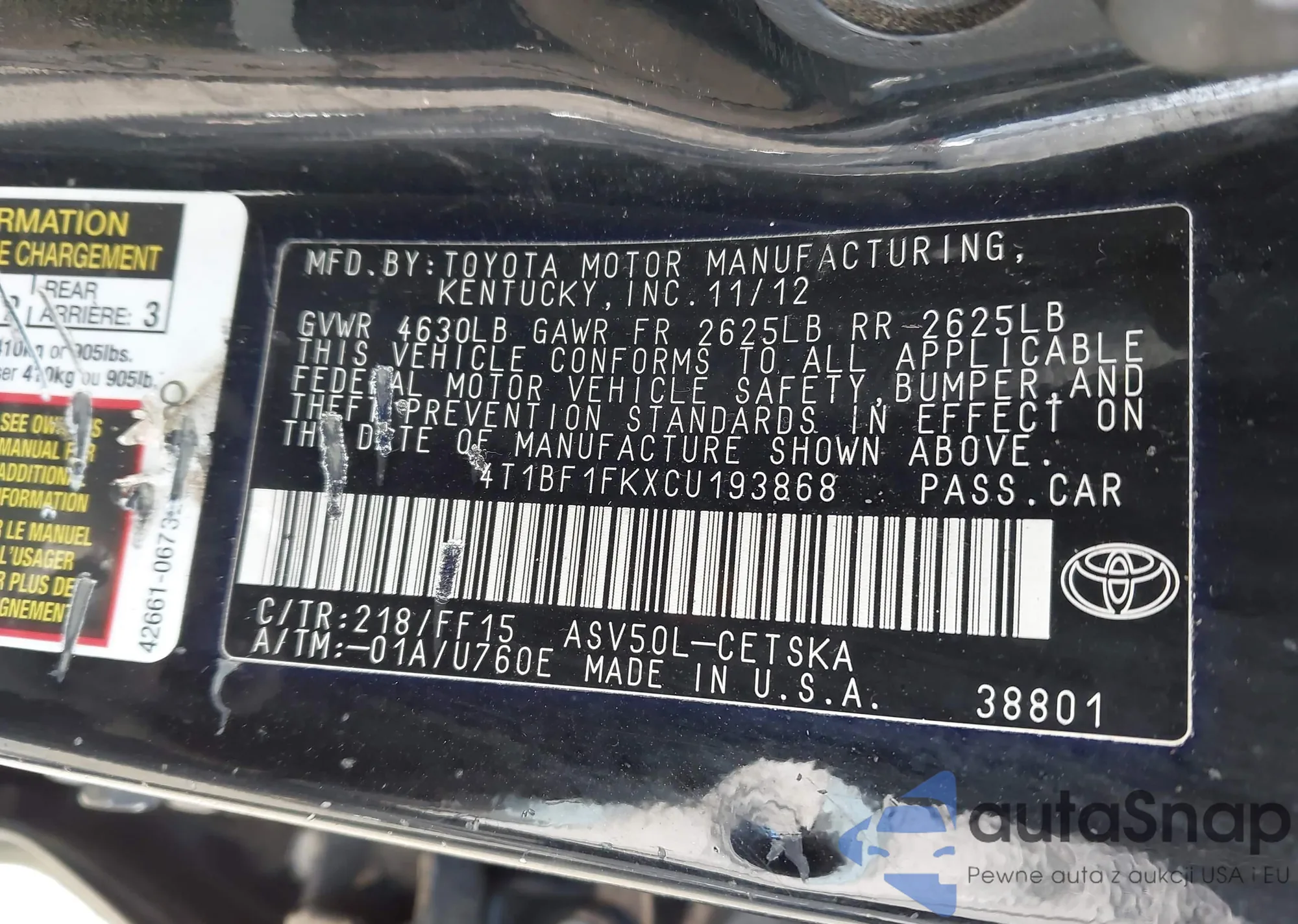 • VIN 4T1BF1FKXCU193868