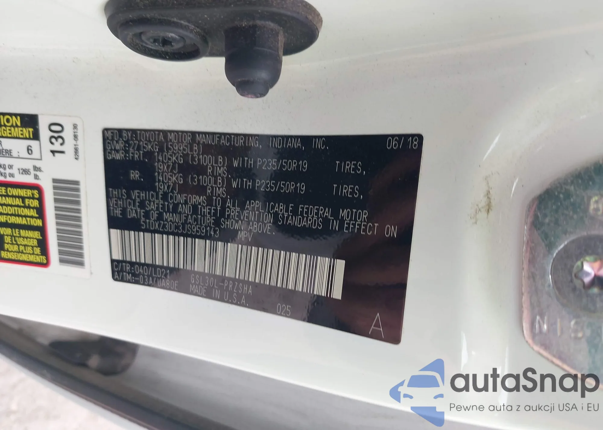 • VIN 5TDXZ3DC3JS959143