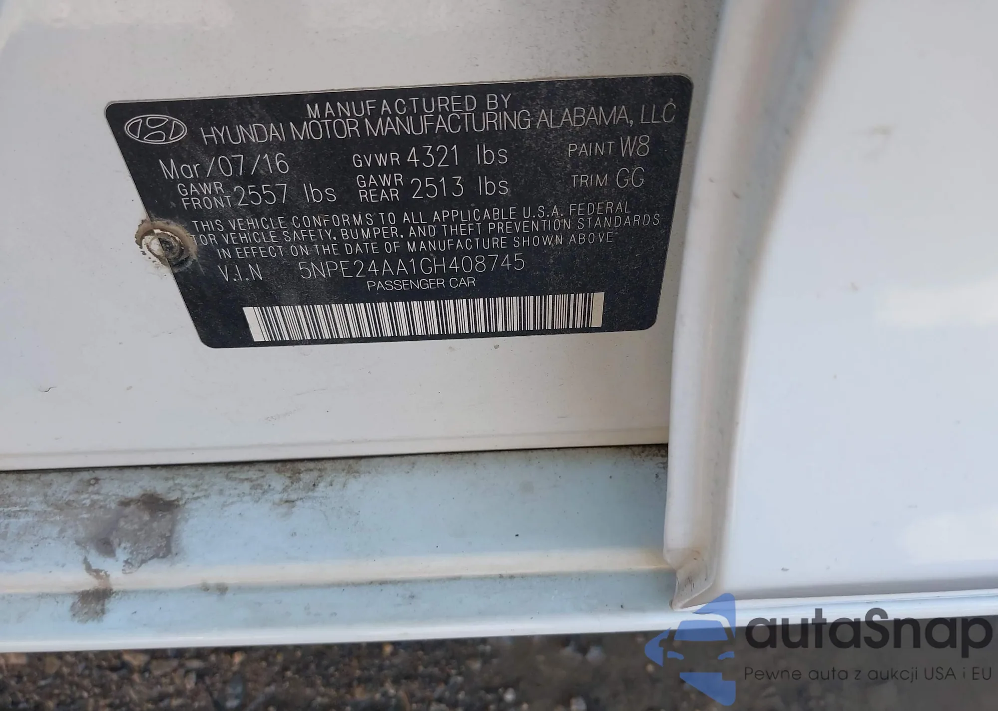 LOT: 43461675 VIN: 5NPE24AA1GH408745