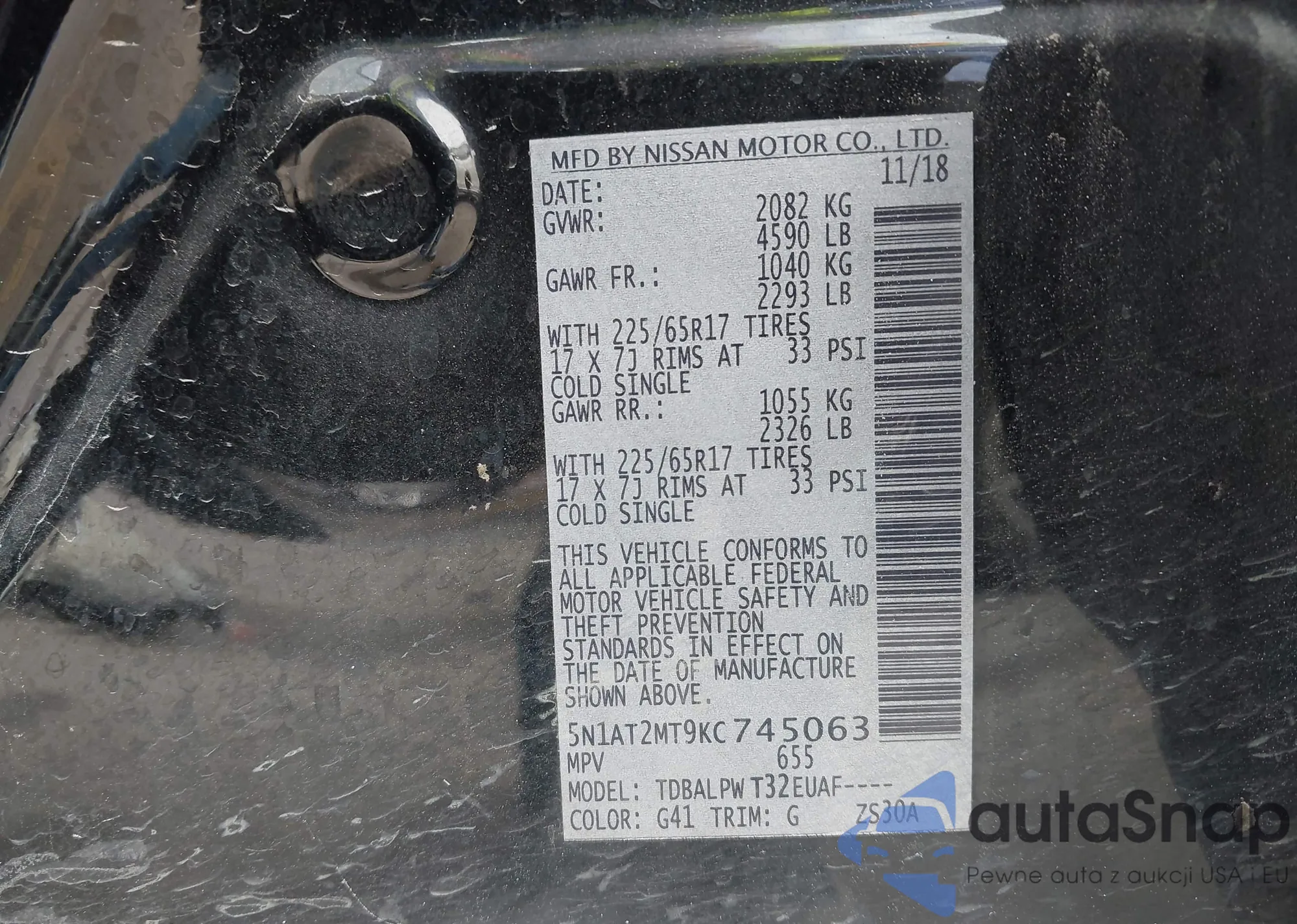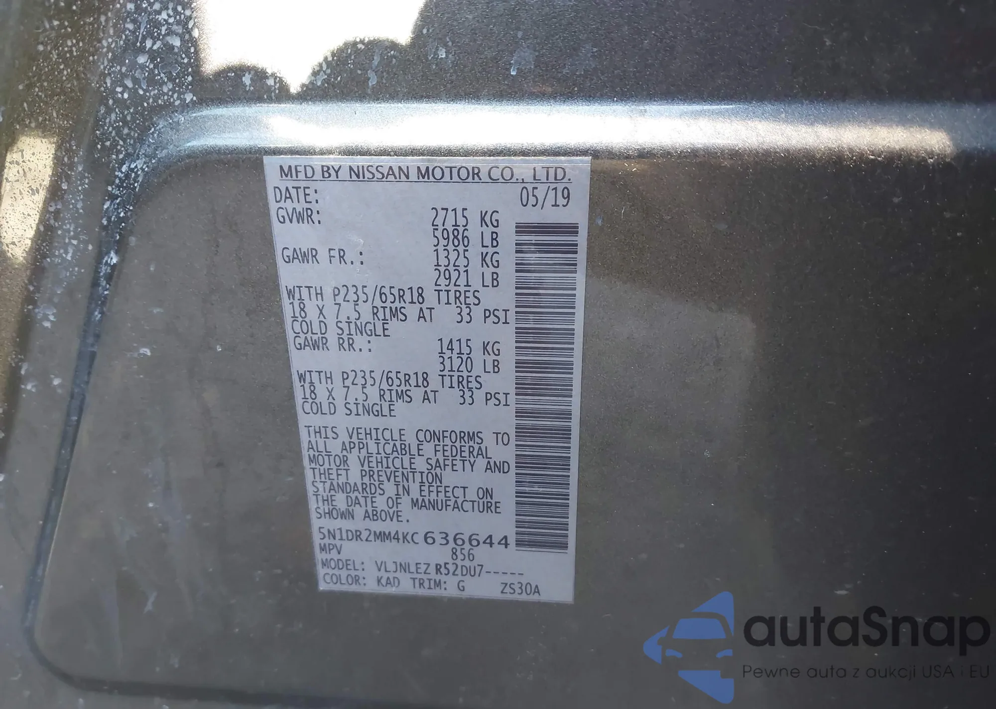LOT: 41591670 VIN: 5N1DR2MM4KC636644