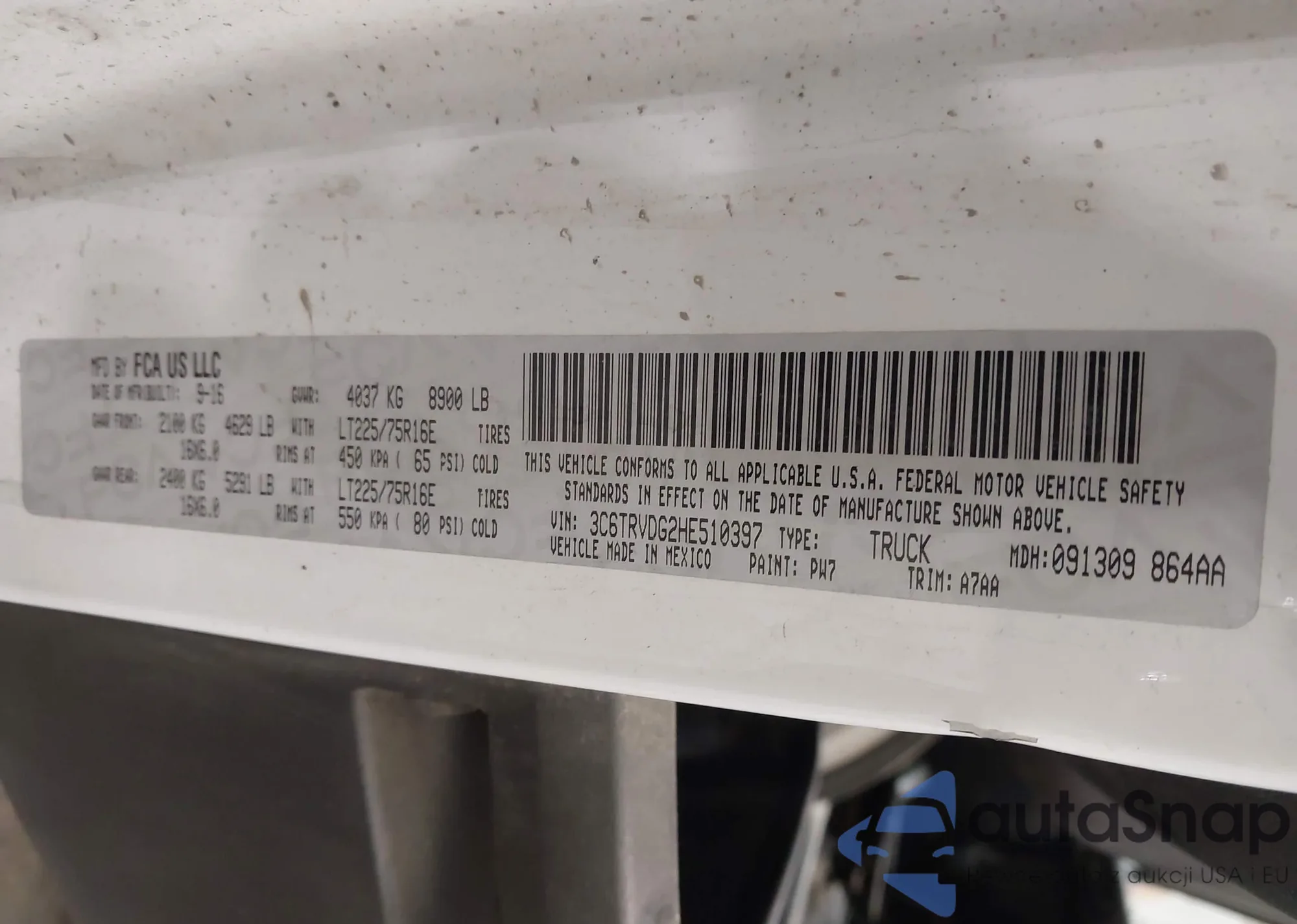 • VIN 3C6TRVDG2HE510397