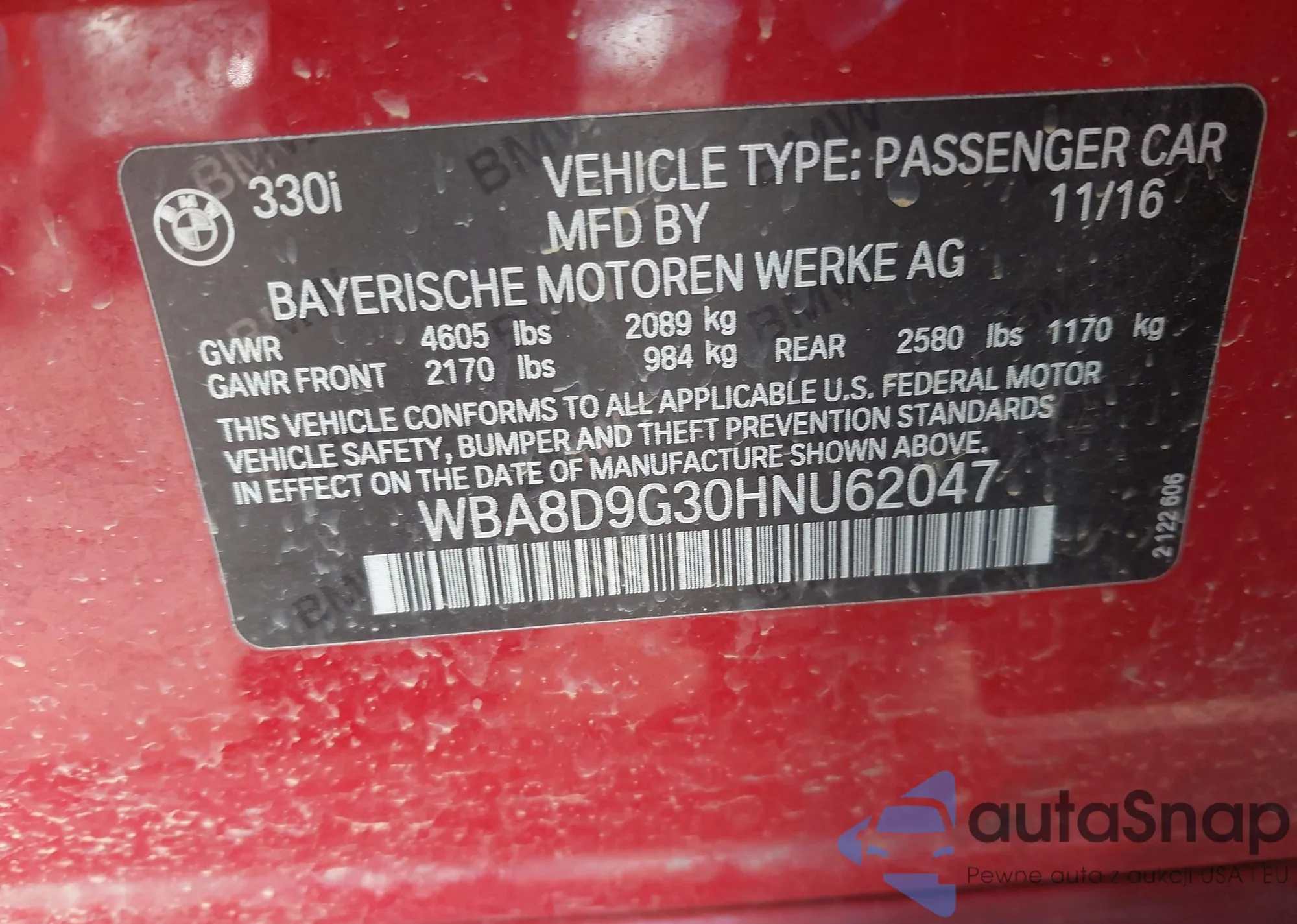 • VIN WBA8D9G30HNU62047