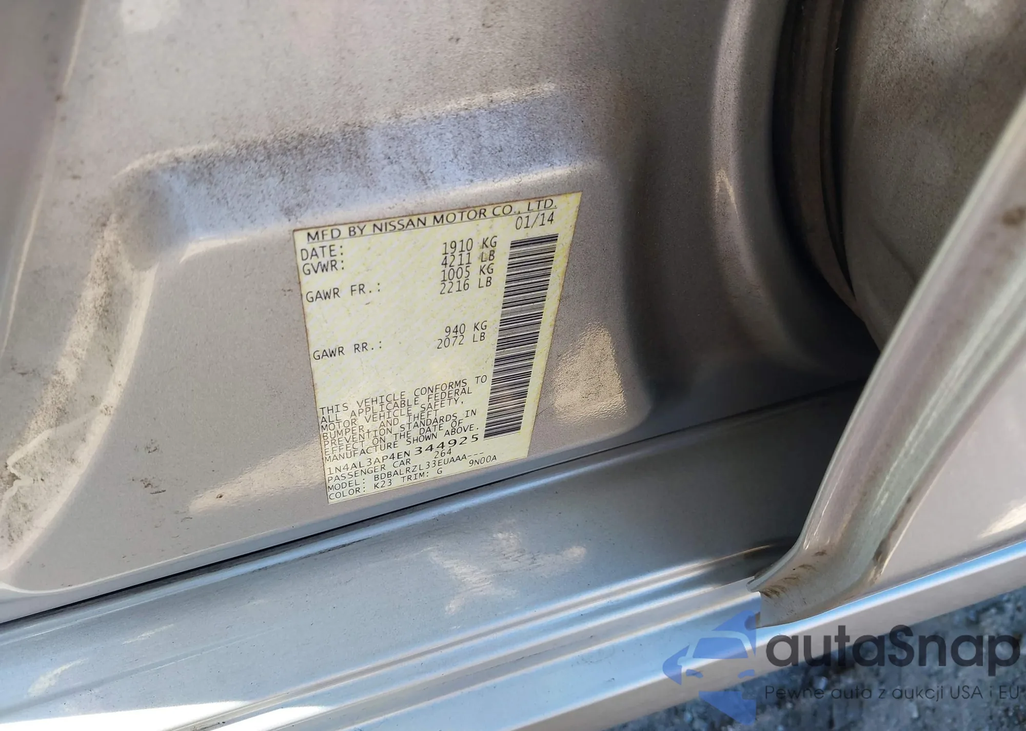 LOT: 43494057 VIN: 1N4AL3AP4EN344925