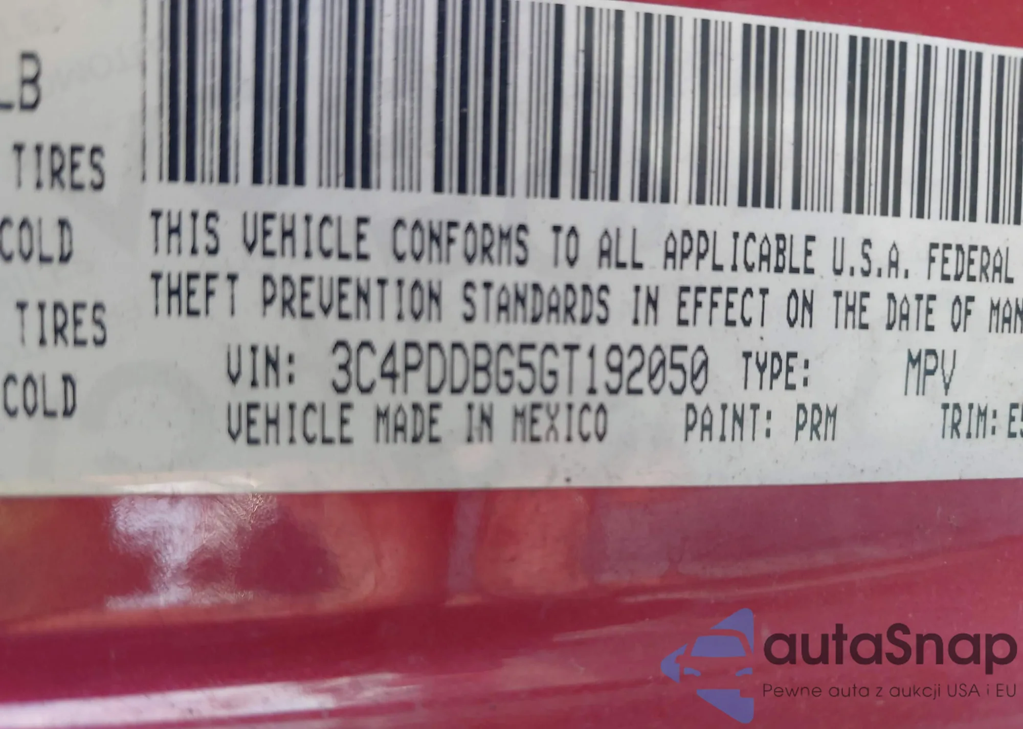 • VIN 3C4PDDBG5GT192050