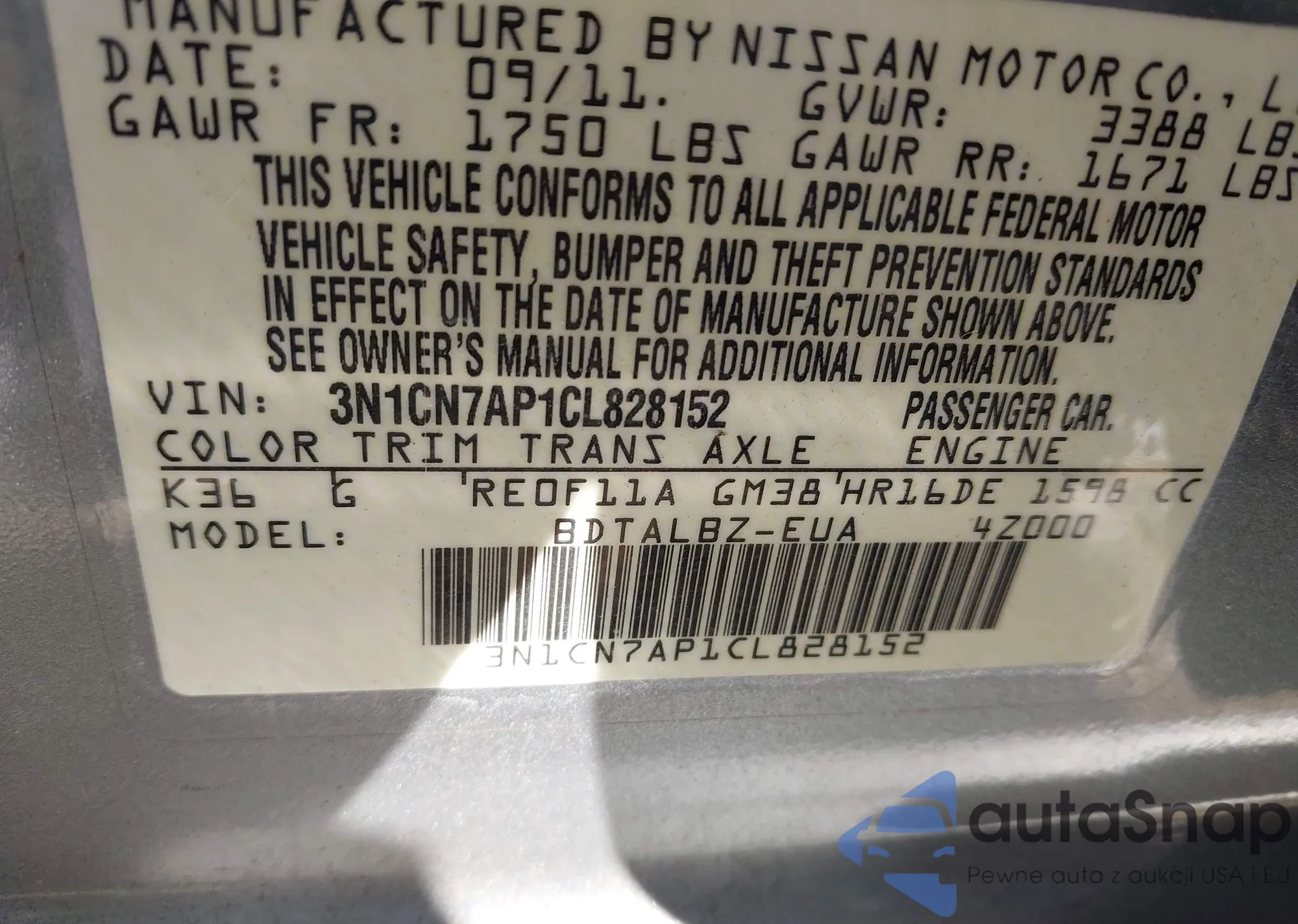 • VIN 3N1CN7AP1CL828152