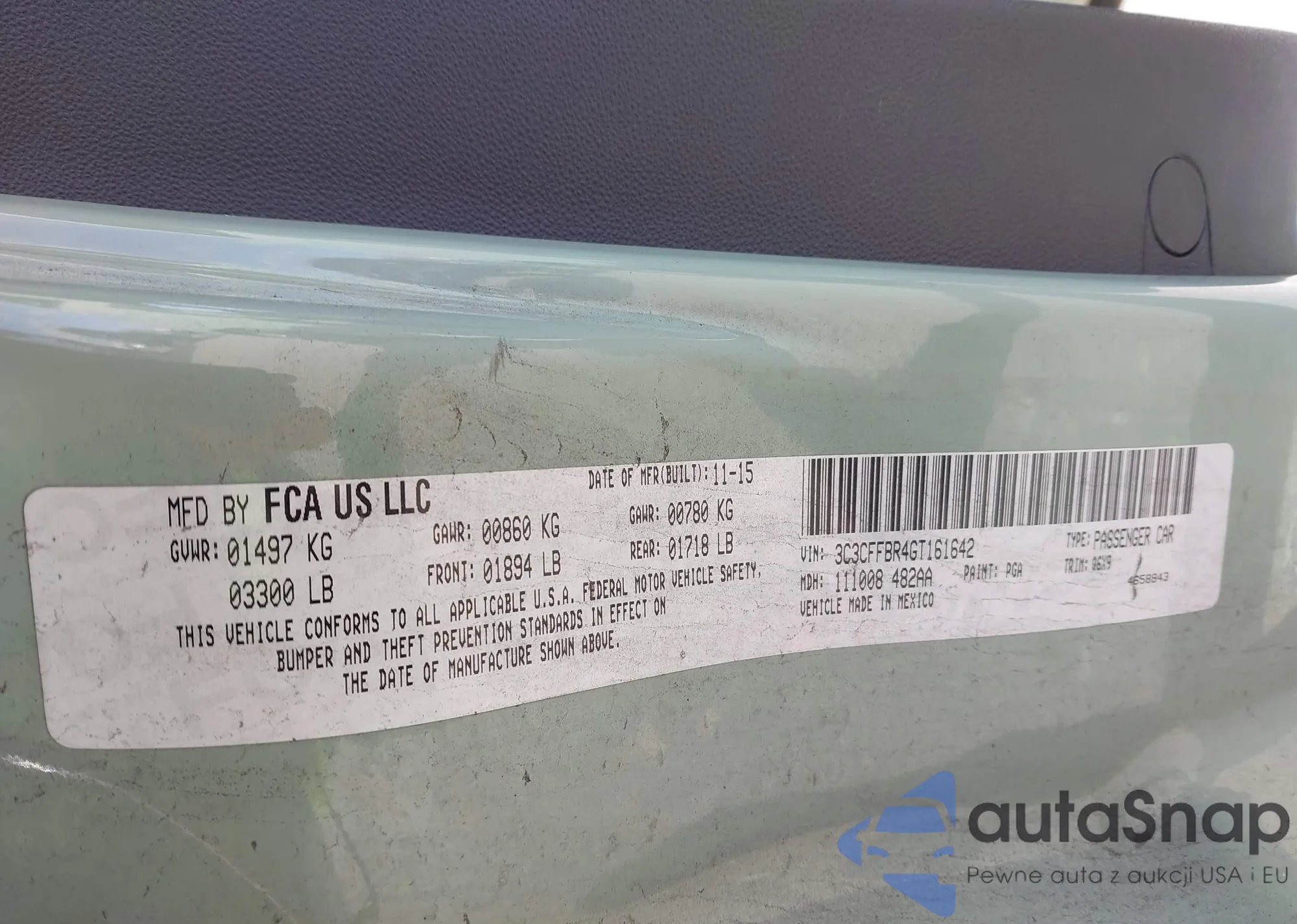 LOT: 43727405 VIN: 3C3CFFBR4GT161642