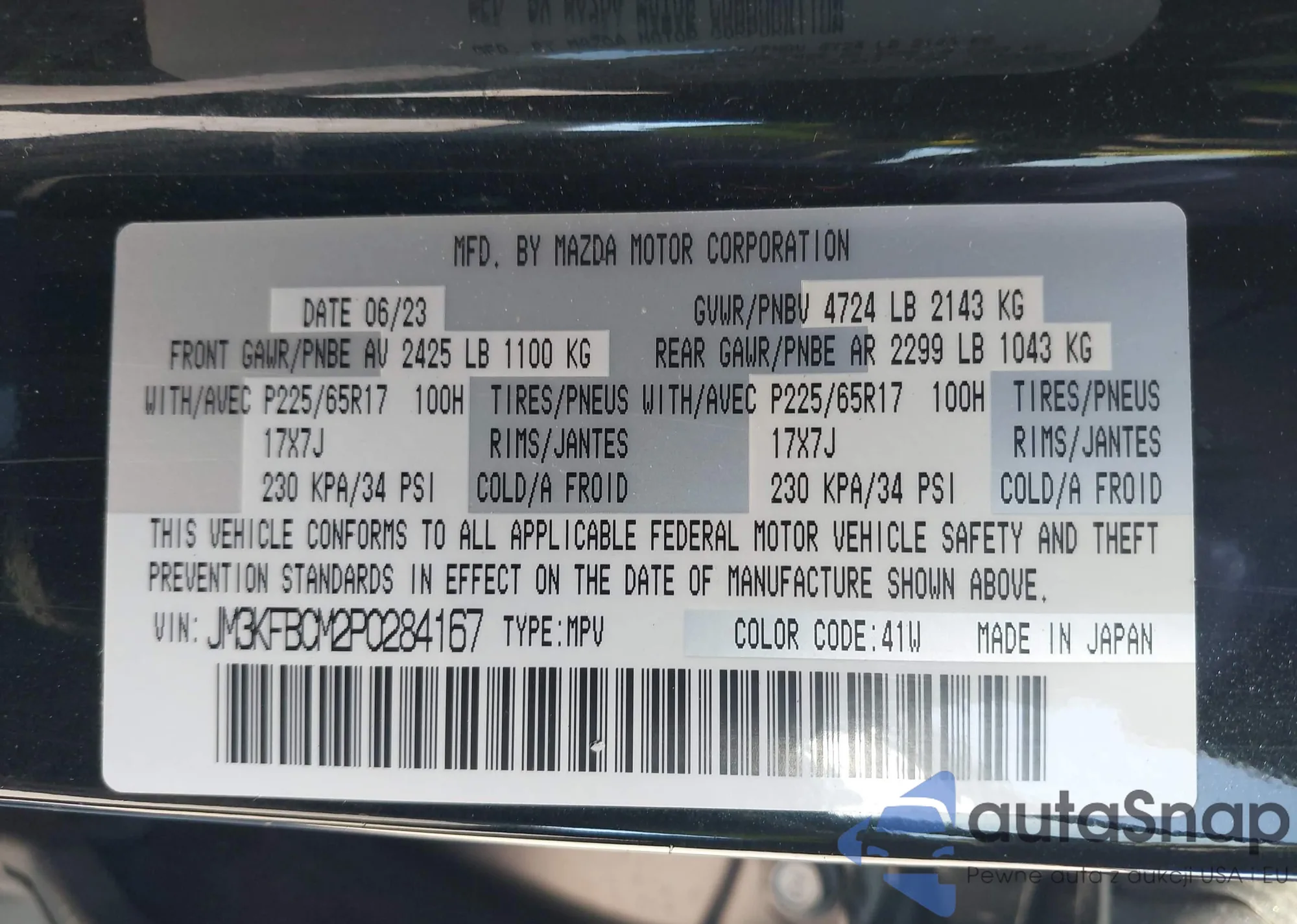 • VIN JM3KFBCM2P0284167