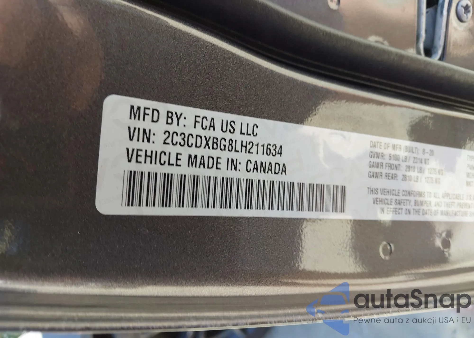 LOT: 43650252 VIN: 1HGCS21838A012075