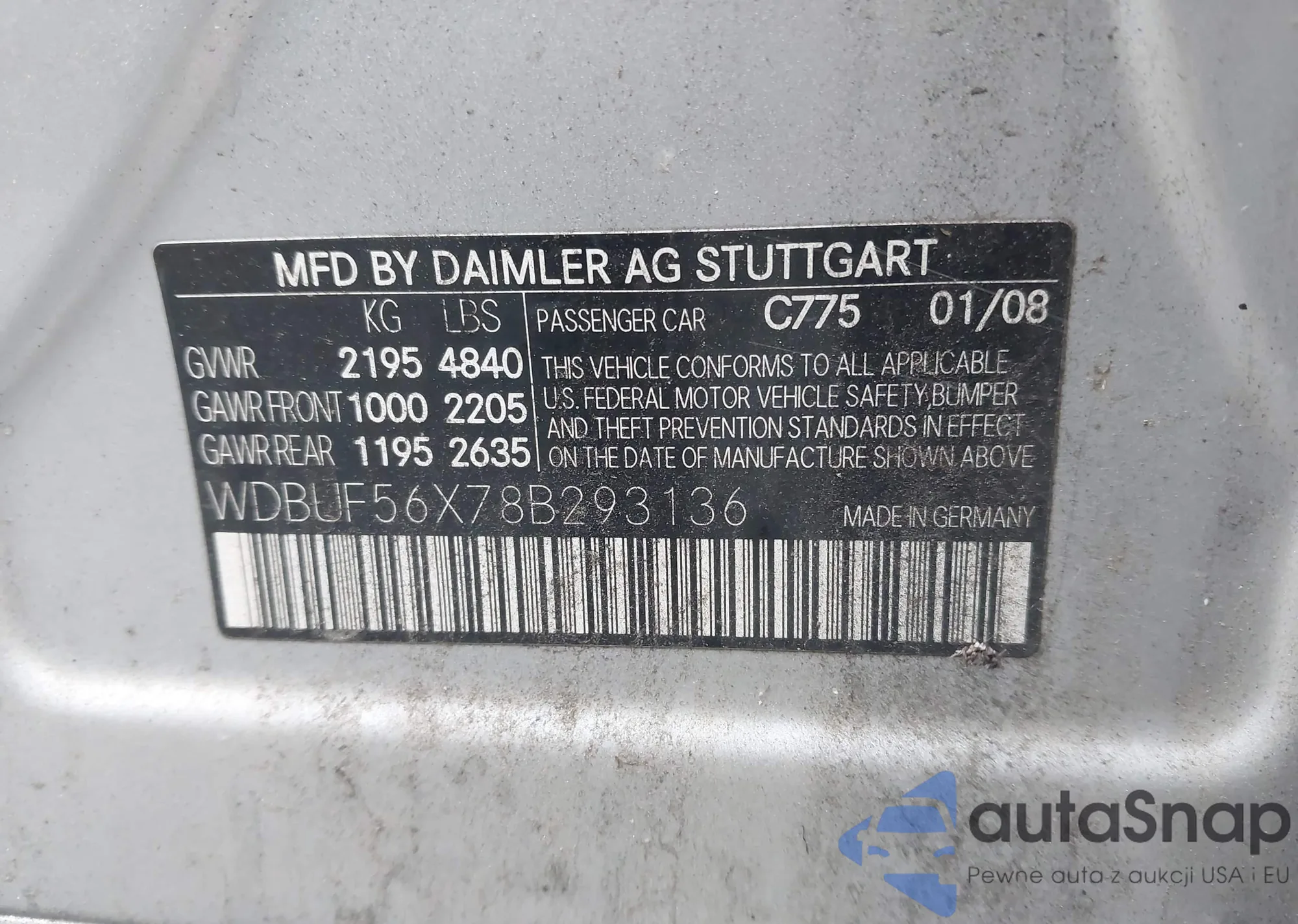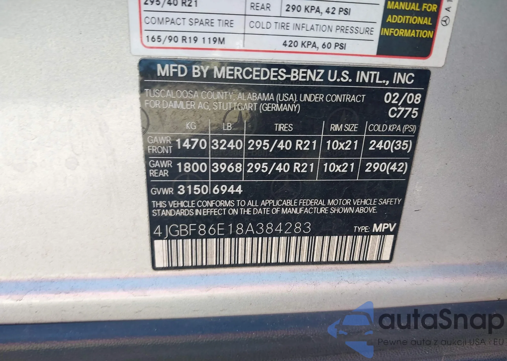 LOT: 43453614 VIN: 4JGBF86E18A384283