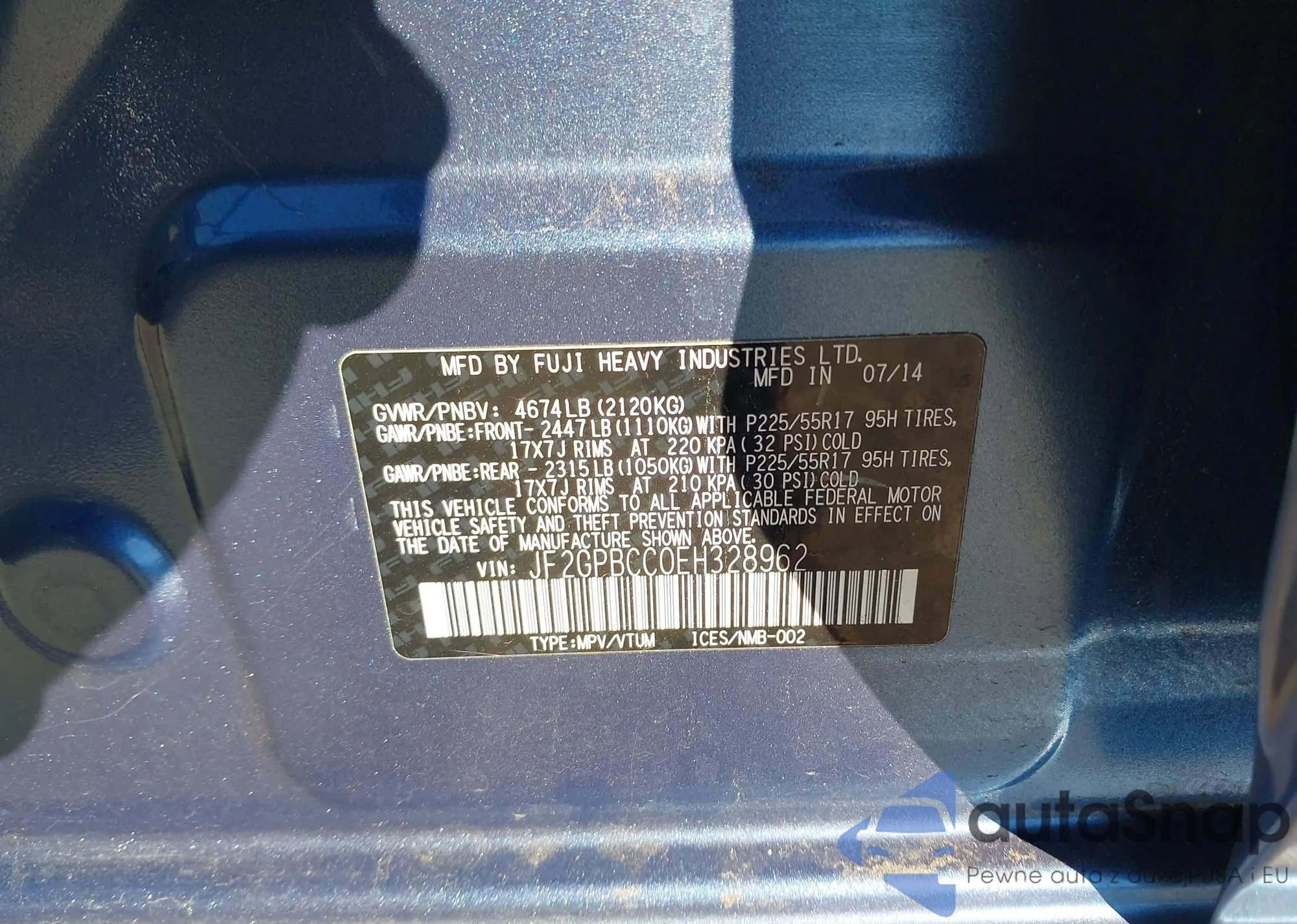 • VIN 5XYZU3LA6EG174268