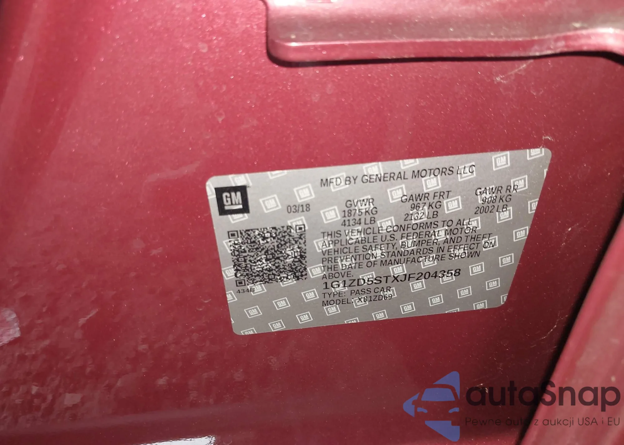 LOT: 43159899 VIN: 1G1ZD5STXJF204358