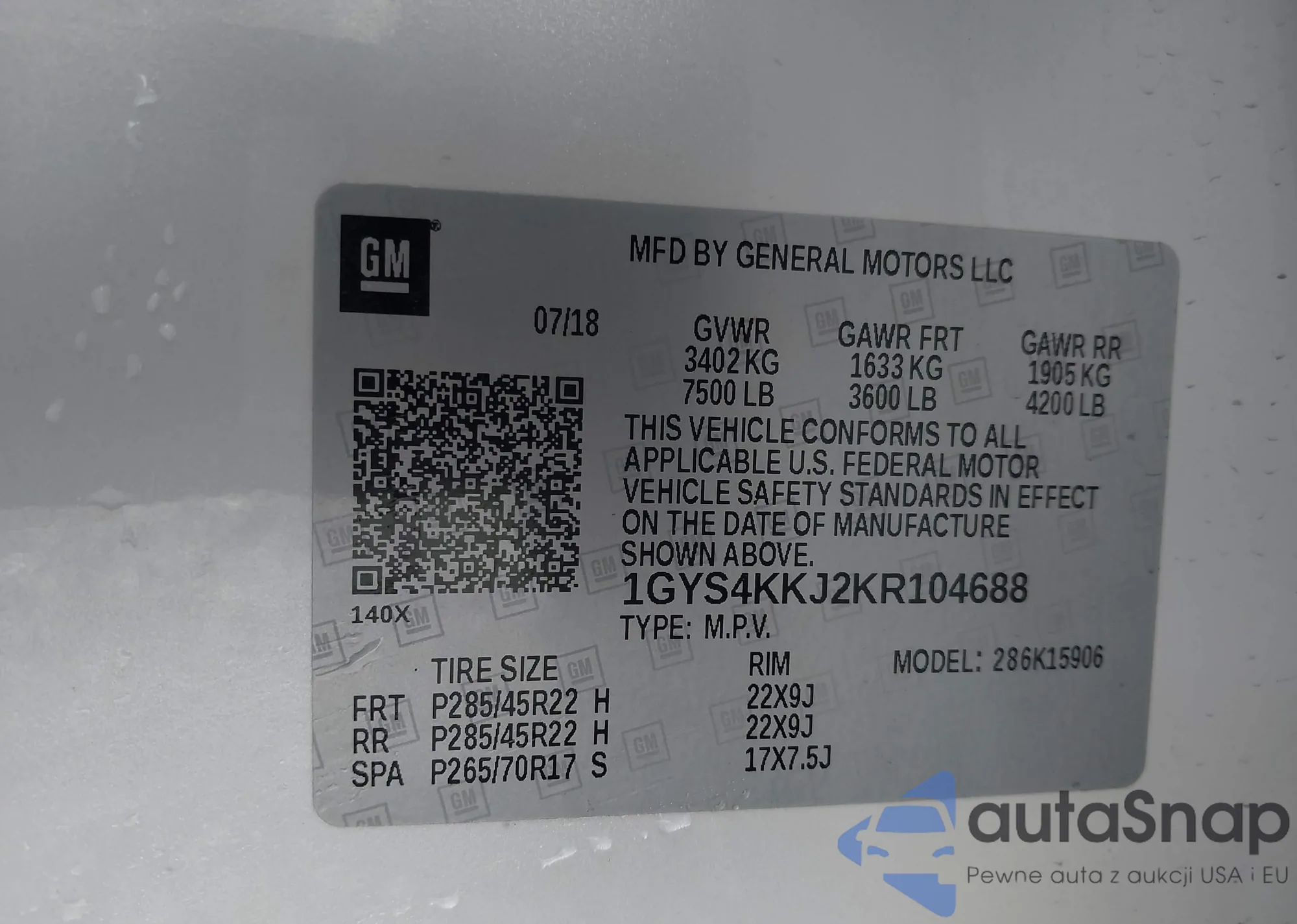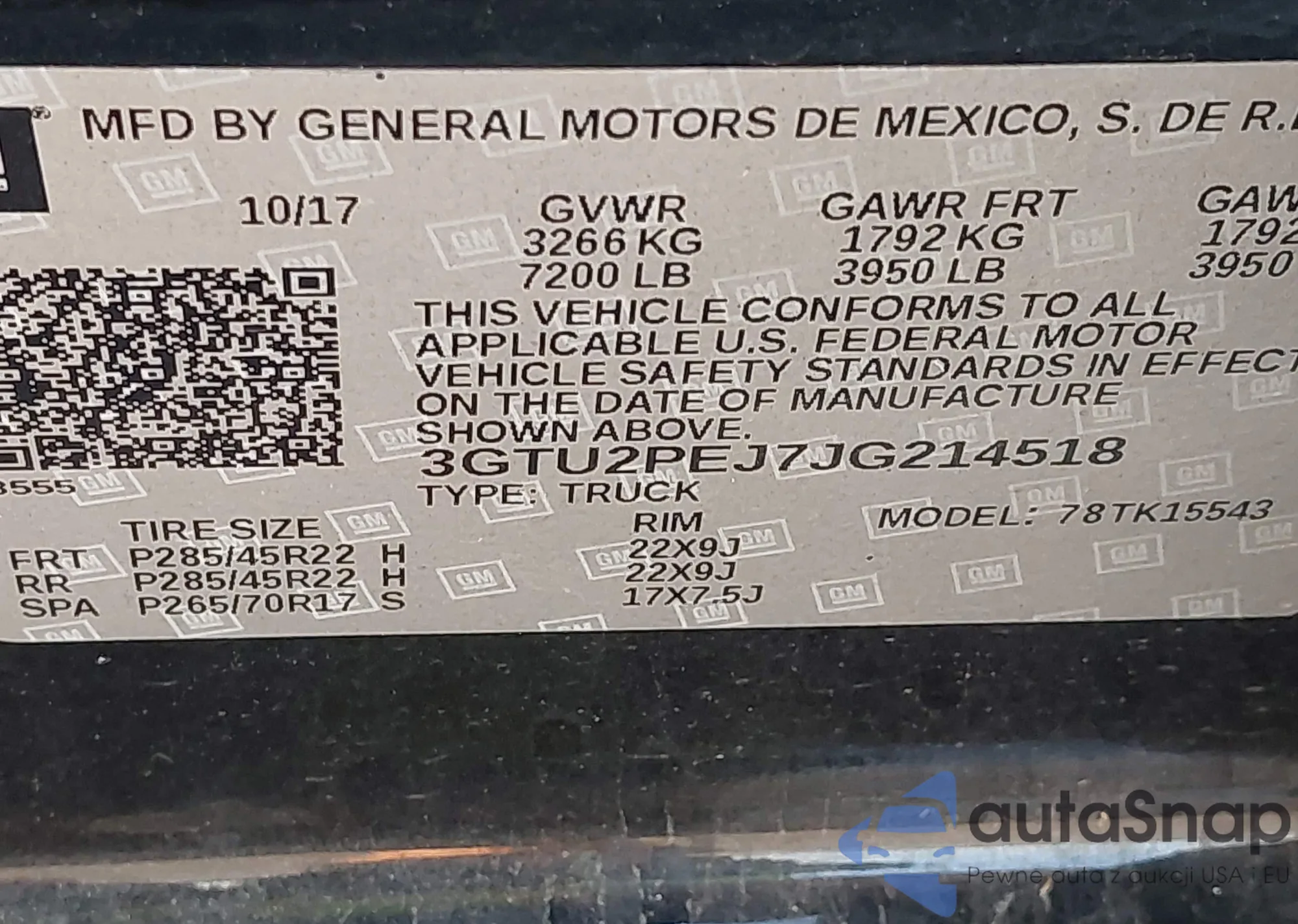 • VIN 3GTU2PEJ7JG214518